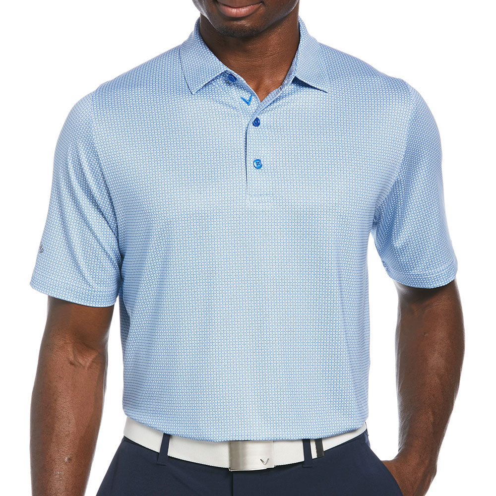 From the first tee to the 18th green, you?ll appreciate the flexible comfort and sporty style of this Callaway men?s golf shirt. An all-over Chevron foulard print adds visual interest while still remaining versatile enough to pair with a wide variety of bottoms. Shop Callaway today!