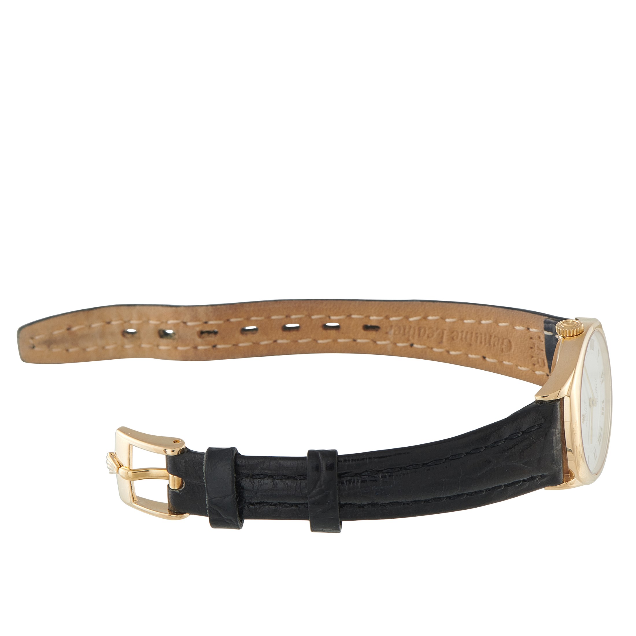 A Cellini reference like this offers a different entry point into the Rolex brand. It is less about sport and more about form and restraint. The ref. 4129 features a rounded, cushion-style case in 18K yellow gold housing a white dial accented with Roman numeral hour markers and a pair of polished hands. Within the compact 25mm case is the manual-wind caliber 1602, which provides mechanical energy for the time-only display.This pre-owned Rolex Cellini 18K Yellow Gold Watch 4129 comes with a gift box.