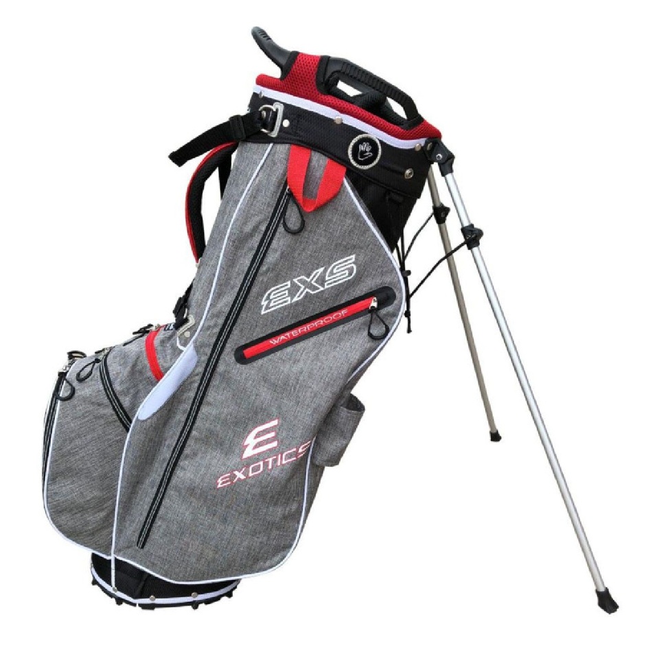 The Exotics Extreme 7.0 Stand Bag features a 7-way top for easy organization and protection. The bag has 9 pockets to offer tons of storage, including a waterproof pocket to keep your valuables safe and dry. Premium dual straps and a premium hip pad allow for extra comfort as you move on to the next hole.