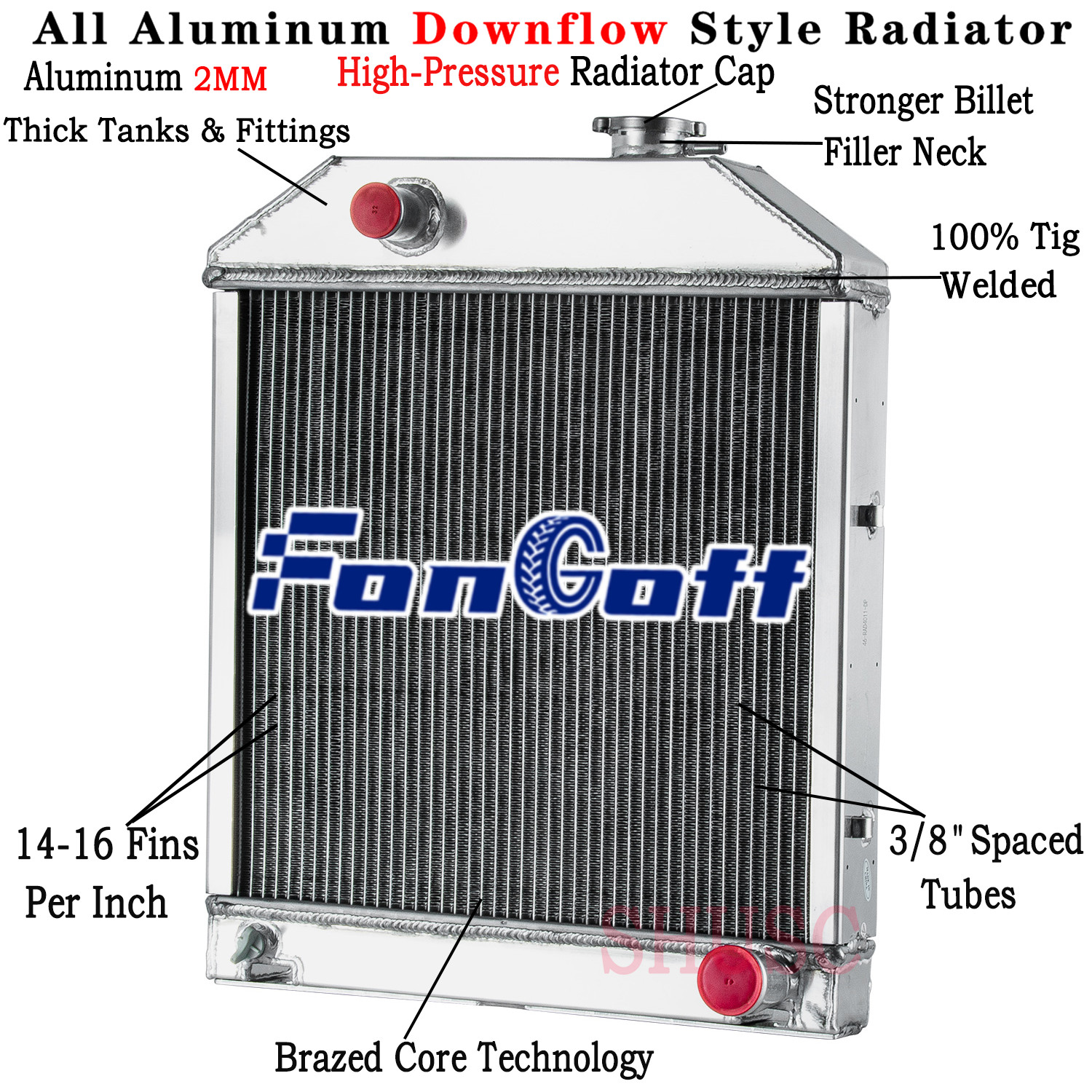 One New Aftermarket Replacement Radiator made to Fits Ford/New Holland models: 230A, 231, 233, 234, 333, 334, 335, 420, 515, 530A, 531, 532, 2000, 2100, 2120, 2300, 2310, 2600, 2610, 2810, 2910, 3000, 3600, 3610, 3900, 3910, 4000, 4100, 4110, 4140, 4400, 4410, 4600, 4610.