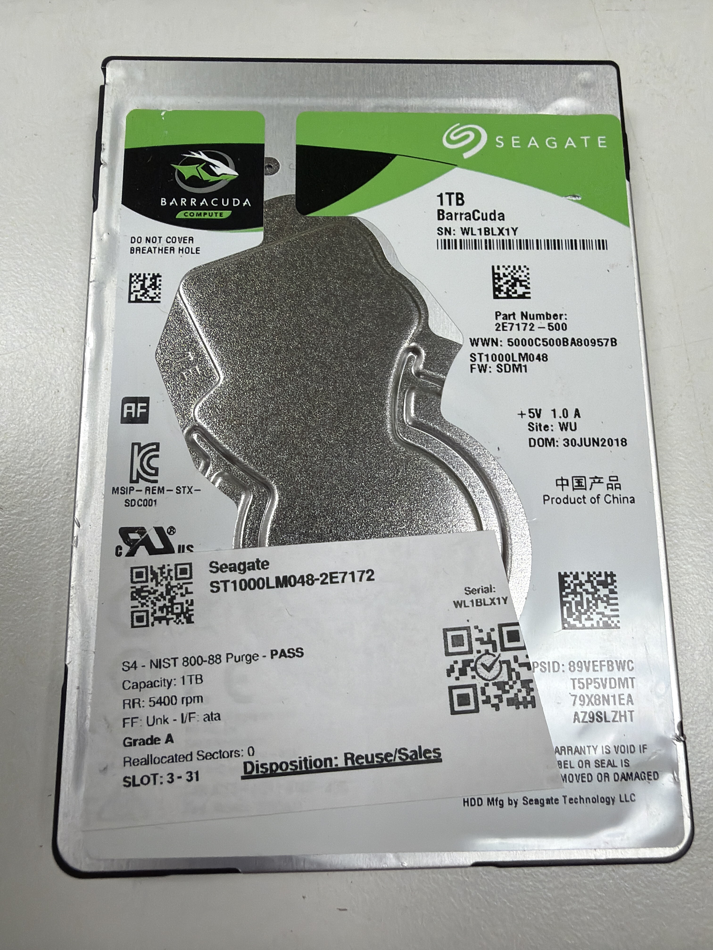 This Seagate BarraCuda 1TB 2.5" SATA hard drive (model ST1000LM048) offers reliable, high-capacity storage for laptops or compact computers. With a 5400 RPM spindle speed and SATA III interface, it provides balanced performance and efficiency for everyday computing needs. Perfect for expanding your storage or replacing a failing drive in your laptop.