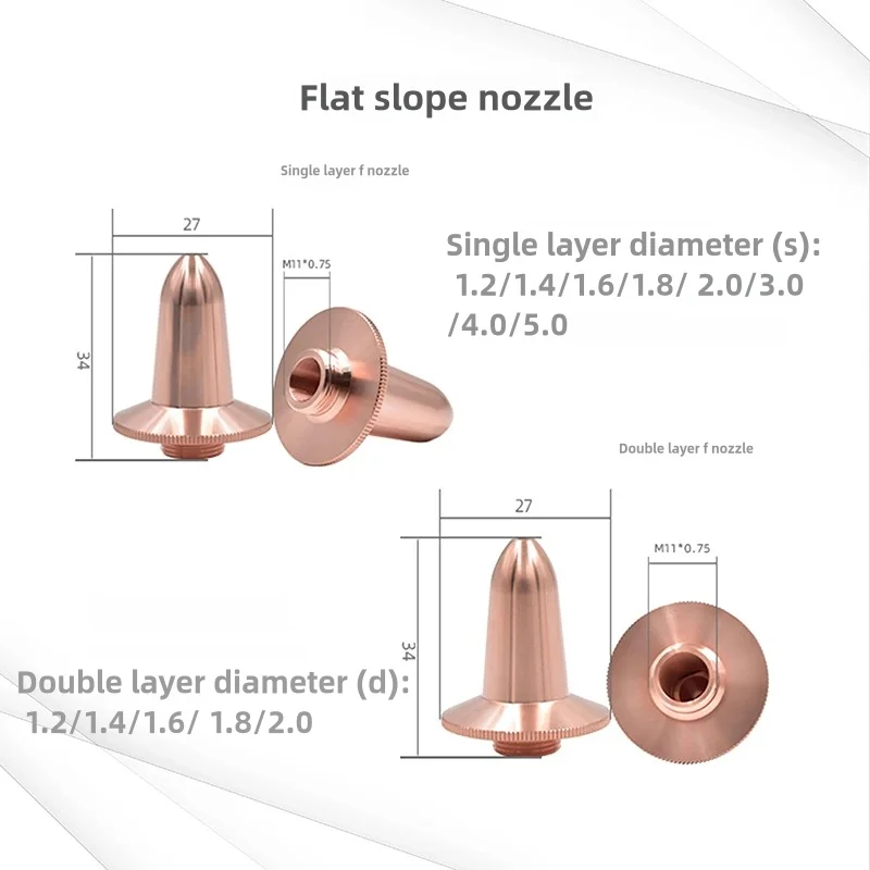 BOCI Original D27 H34 M11 Flat Bevel Laser Cutting Nozzle 3D Cutter Head Pointed Copper Nozzles For BOCHU BLT310 BLT4XX BLT6XX