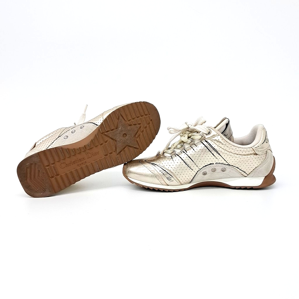 - Item Number: 10292165 - Korean Size: 240 - Gender: Women - Detailed Color: Gold Tone Multi - Origin: Italy - Material: Multi-material - Brand (Tag) Size: I(37) - Heel Height: 2.5 cm (1.0 in) - Shoe Heel Height: 1~3 cm (0.4~1.2 in) - Season: All Seasons - Gender: Men - Brand: CHRISTIAN DIOR - Product Name: CHRISTIAN DIOR D-Sketch Sneakers 6871320 - Condition: A - Color: Gold Tone Multi - trenbe Code: 6871320 |
