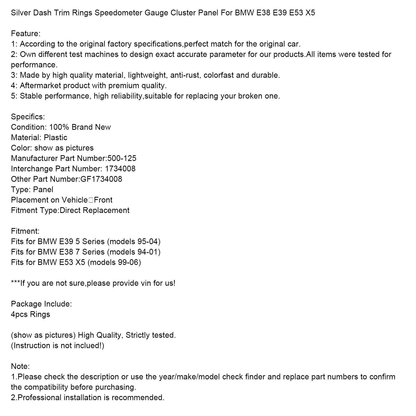 Silver Dash Trim Rings Speedometer Gauge Cluster Panel For BMW E38 E39 E53 X5