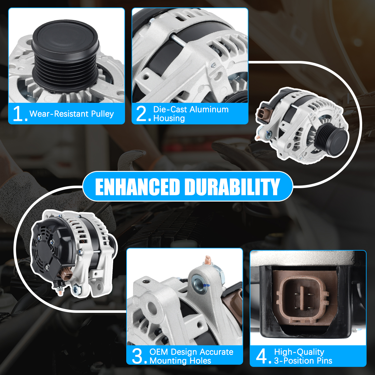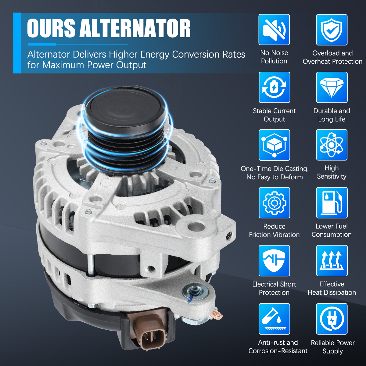 This automotive alternator provides high efficiency and reliability, ensuring stable power supply for your vehicle. It utilizes modern design and manufacturing technologies to deliver excellent performance and provide reliable power for various electrical equipment and charging systems.