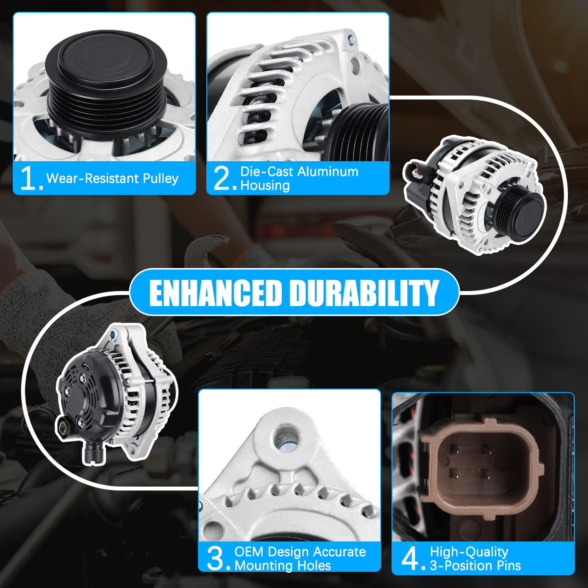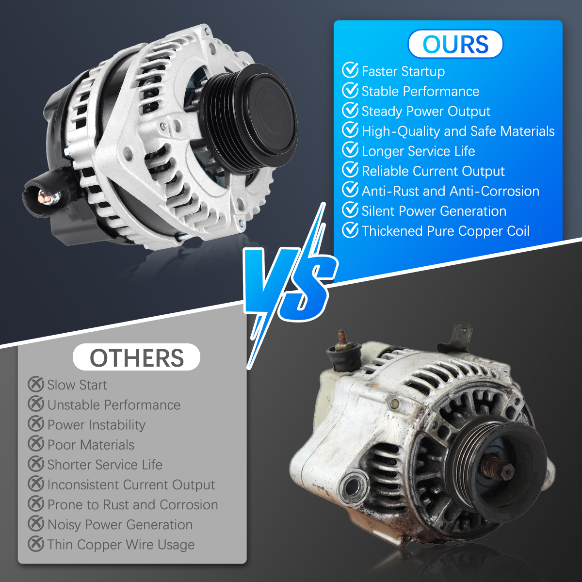 Rugged and stable car alternator, matched against OE originals for performance.