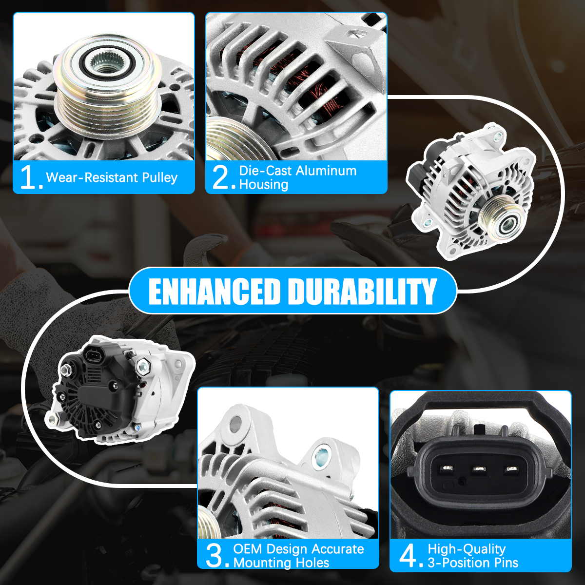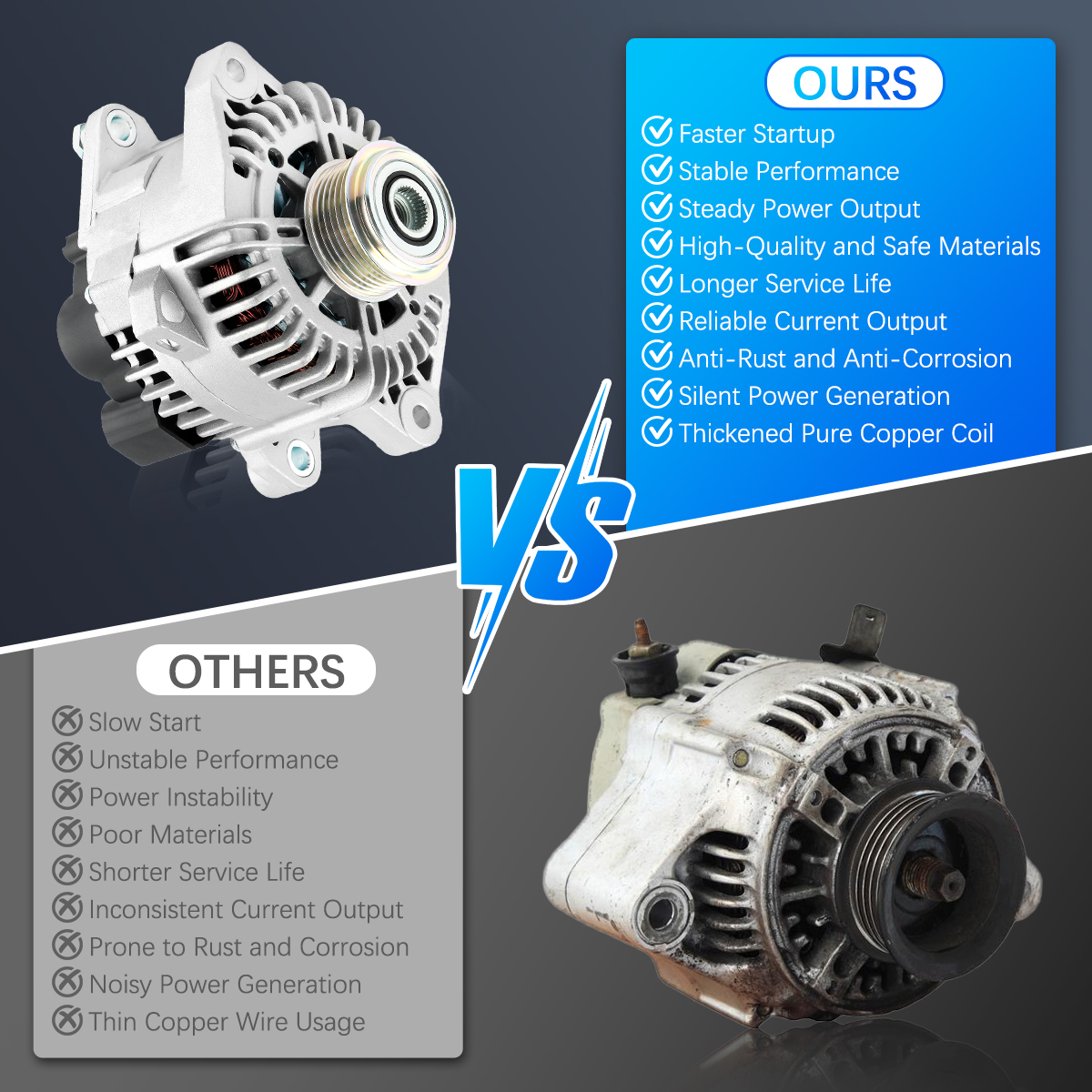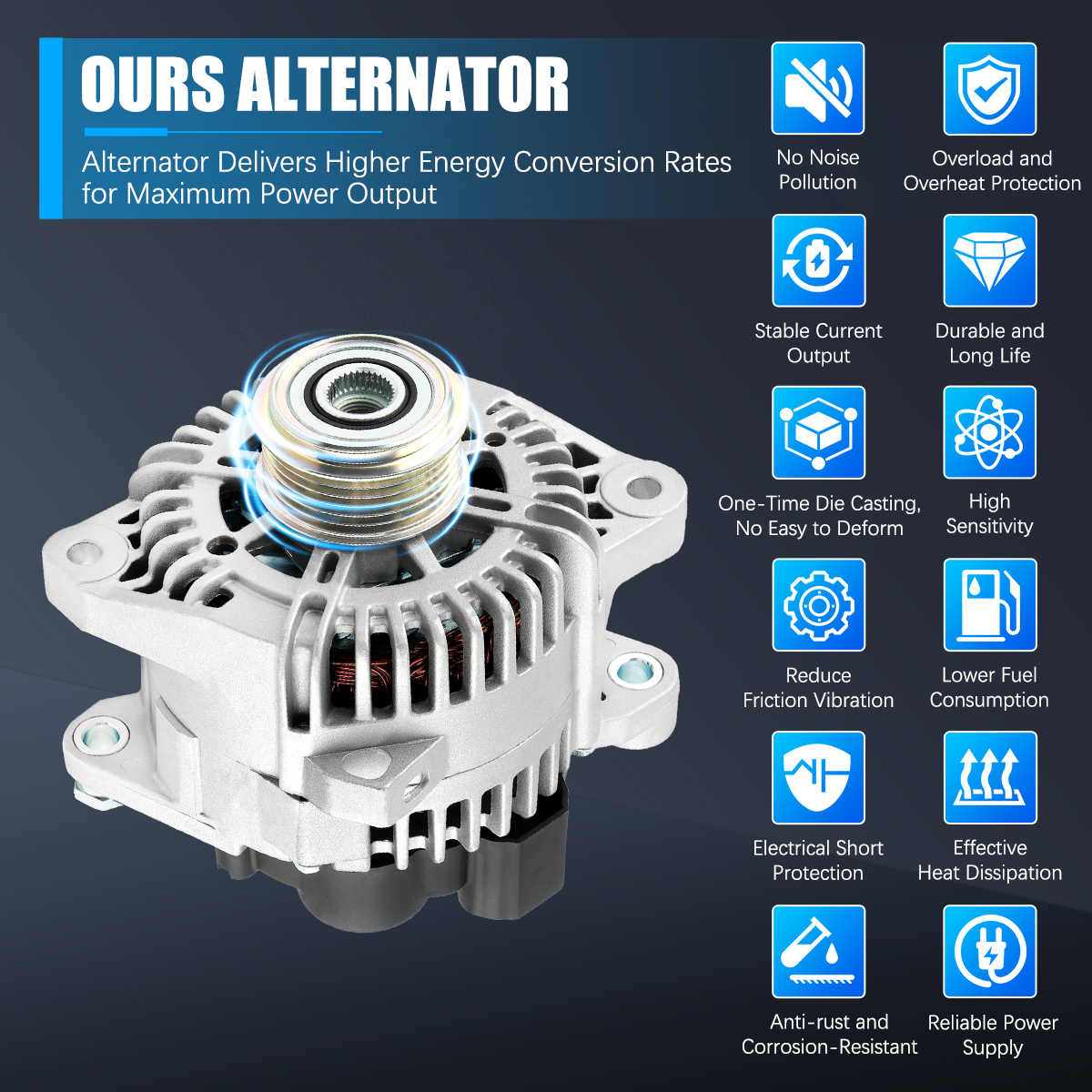 Rugged and stable car alternator, matched against OE originals for performance.