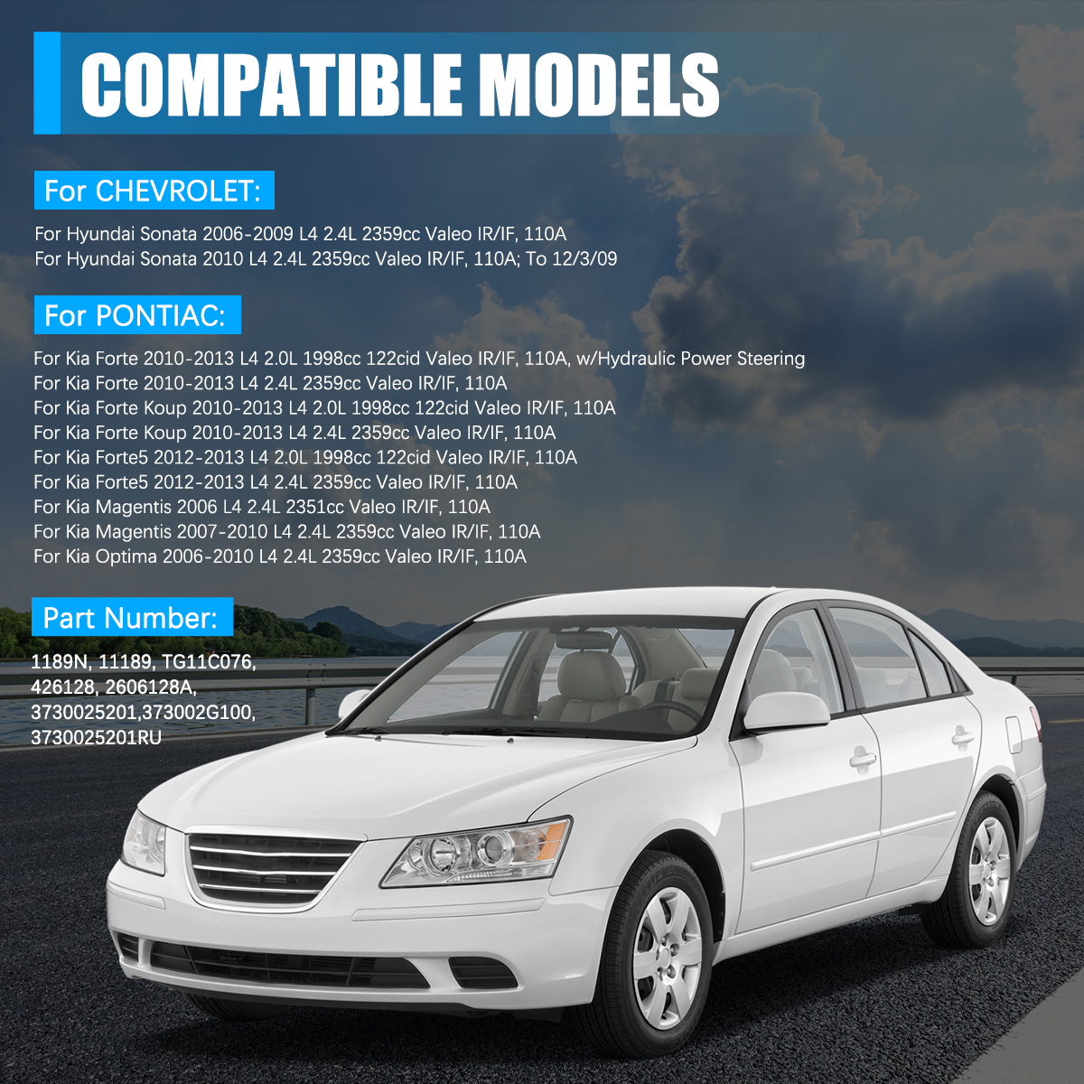 Kia Forte Koup 2010-2013 L4 2.4L 2359cc Valeo IR/IF, 110A