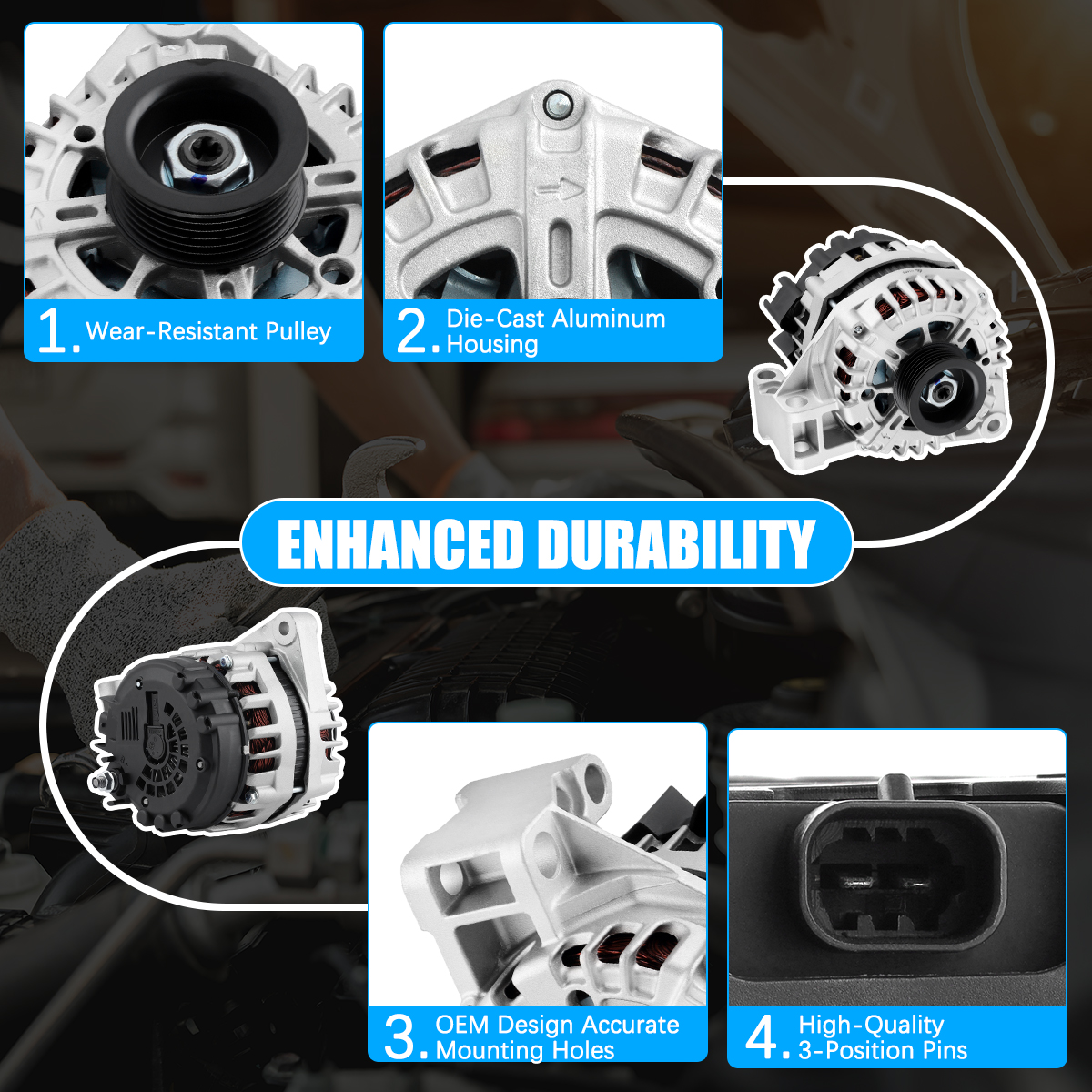 Longer life of the alternator through the use of premium brushes and other critical components that resist failure or poor performance.