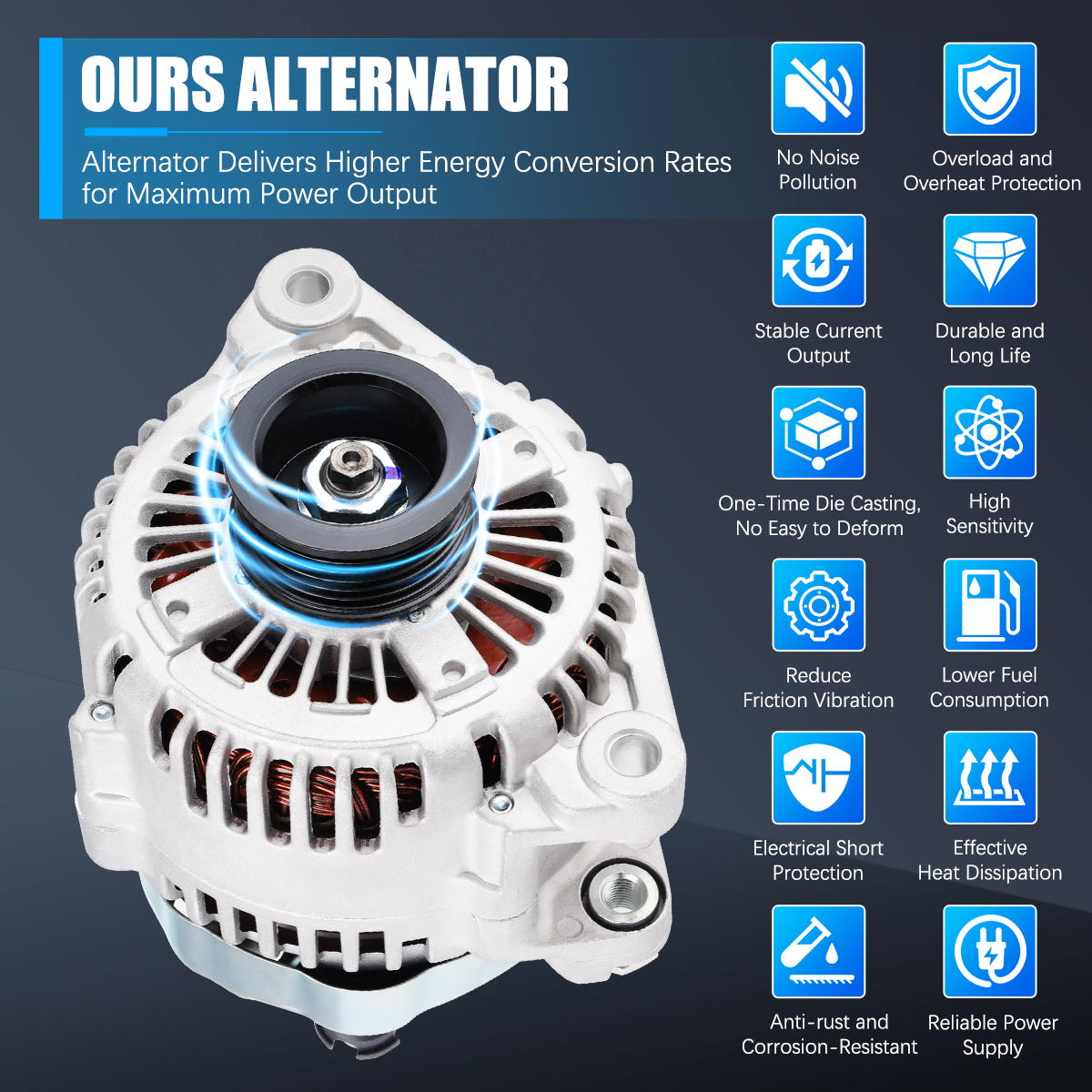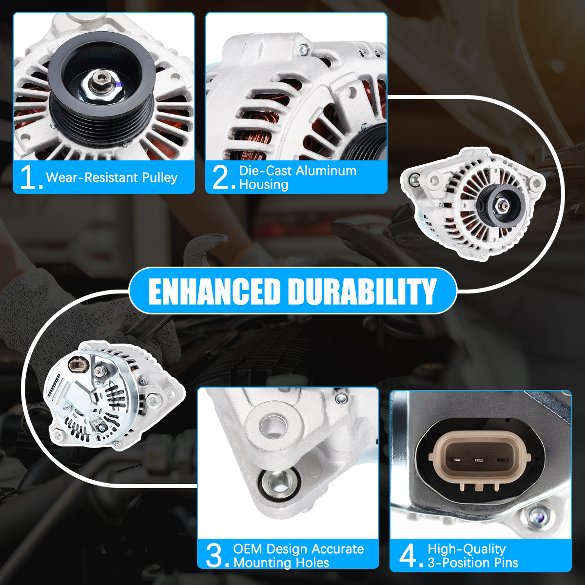 This automotive alternator provides high efficiency and reliability, ensuring stable power supply for your vehicle. It utilizes modern design and manufacturing technologies to deliver excellent performance and provide reliable power for various electrical equipment and charging systems.