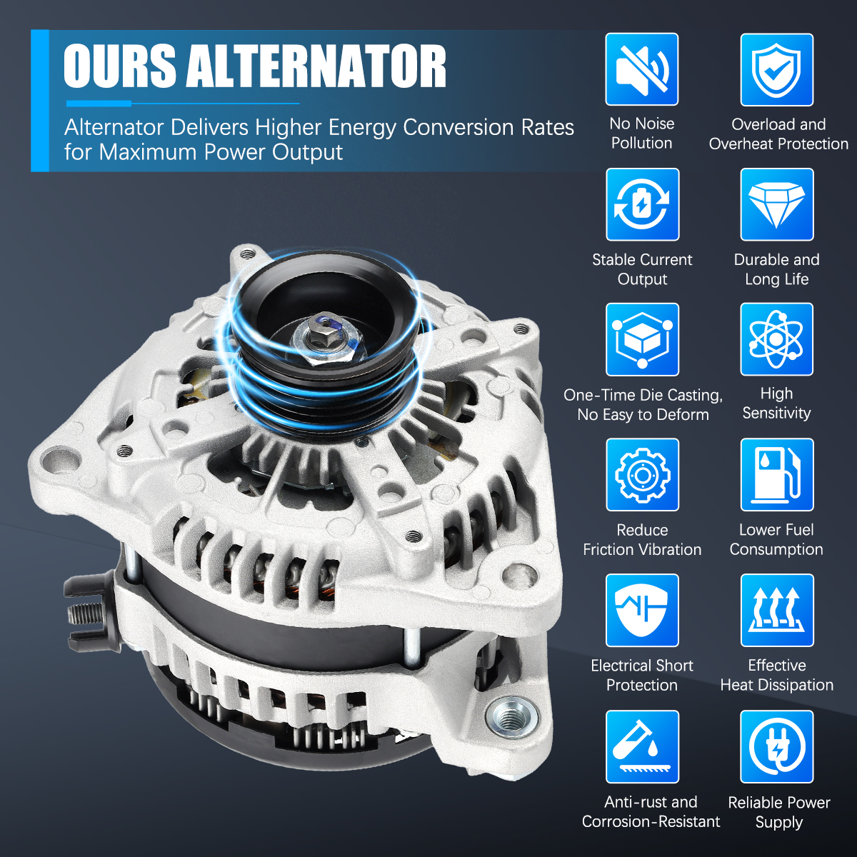 This automotive alternator provides high efficiency and reliability, ensuring stable power supply for your vehicle. It utilizes modern design and manufacturing technologies to deliver excellent performance and provide reliable power for various electrical equipment and charging systems.