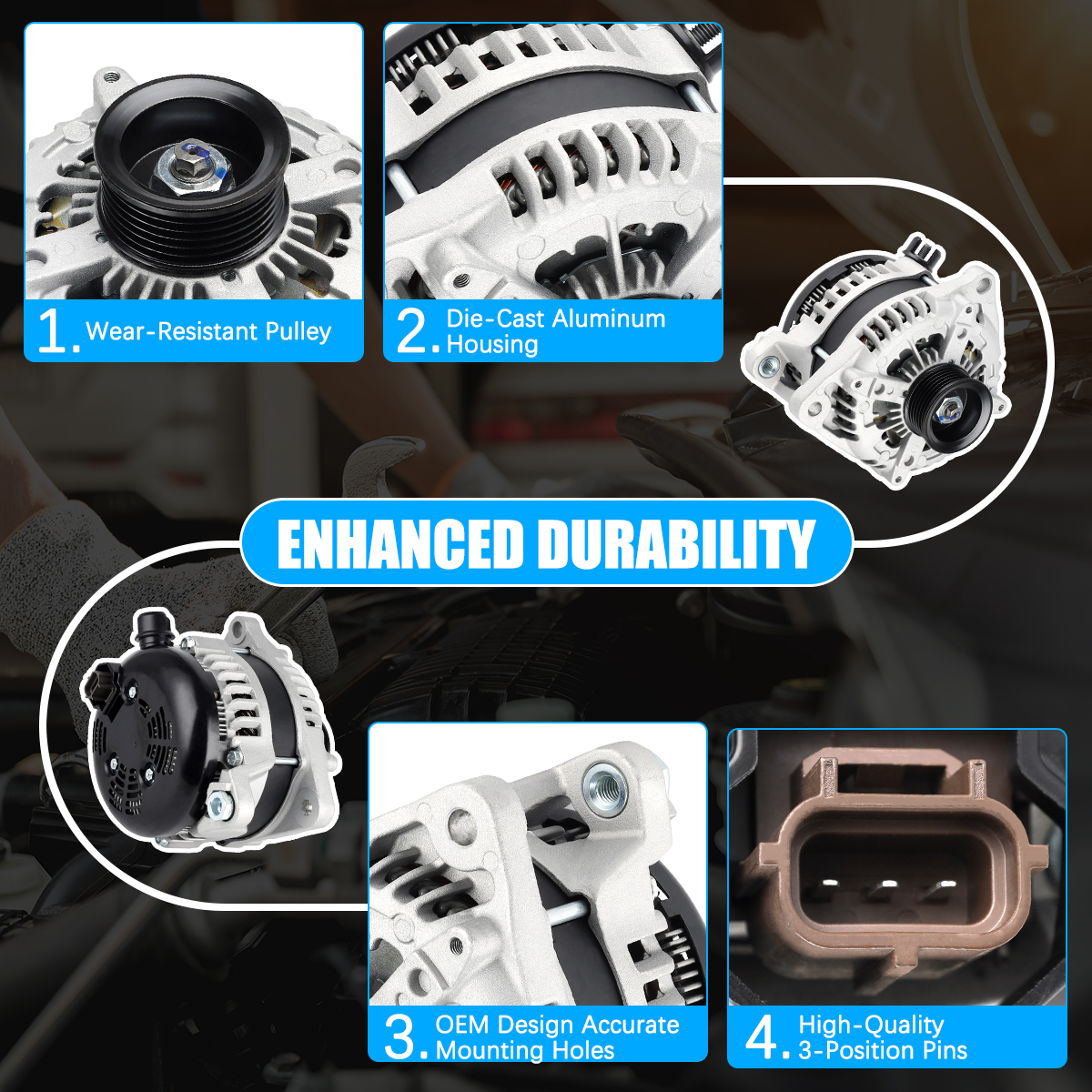 Longer life of the alternator through the use of premium brushes and other critical components that resist failure or poor performance.