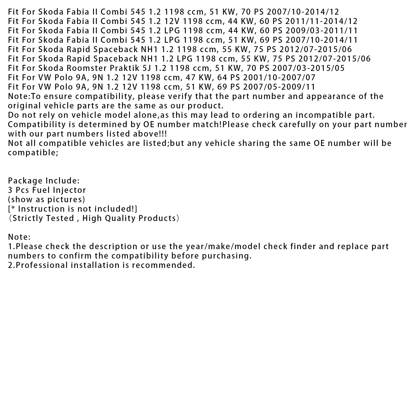 Compatibility is determined by OE number match!Please check carefully on your part number with our part numbers listed above!!!