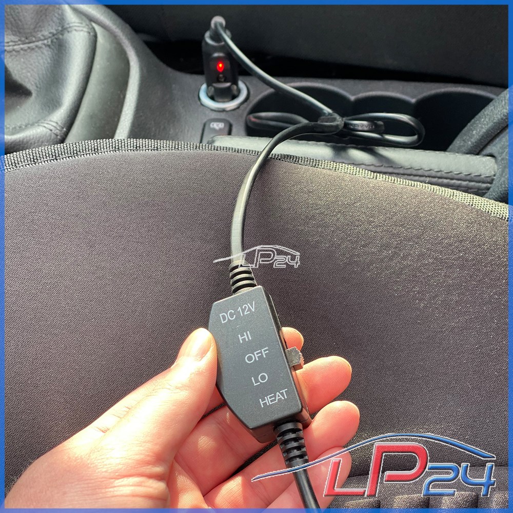 Pour plus de confort pendant la saison froide. Avec deux niveaux de chauffage et un interrupteur MARCHE/ARRÊT avec LED. Protection contre la surchauffe intégrée et fusible dans la fiche de l'allume-cigare. Fixation du dossier par bandes longitudinales, convient donc aussi aux voitures avec airbag latéral.