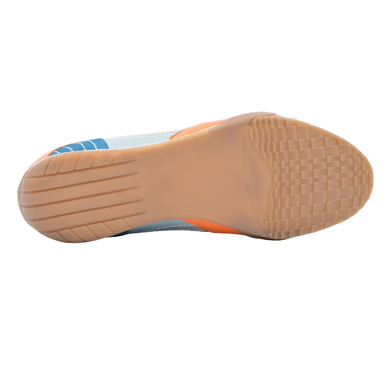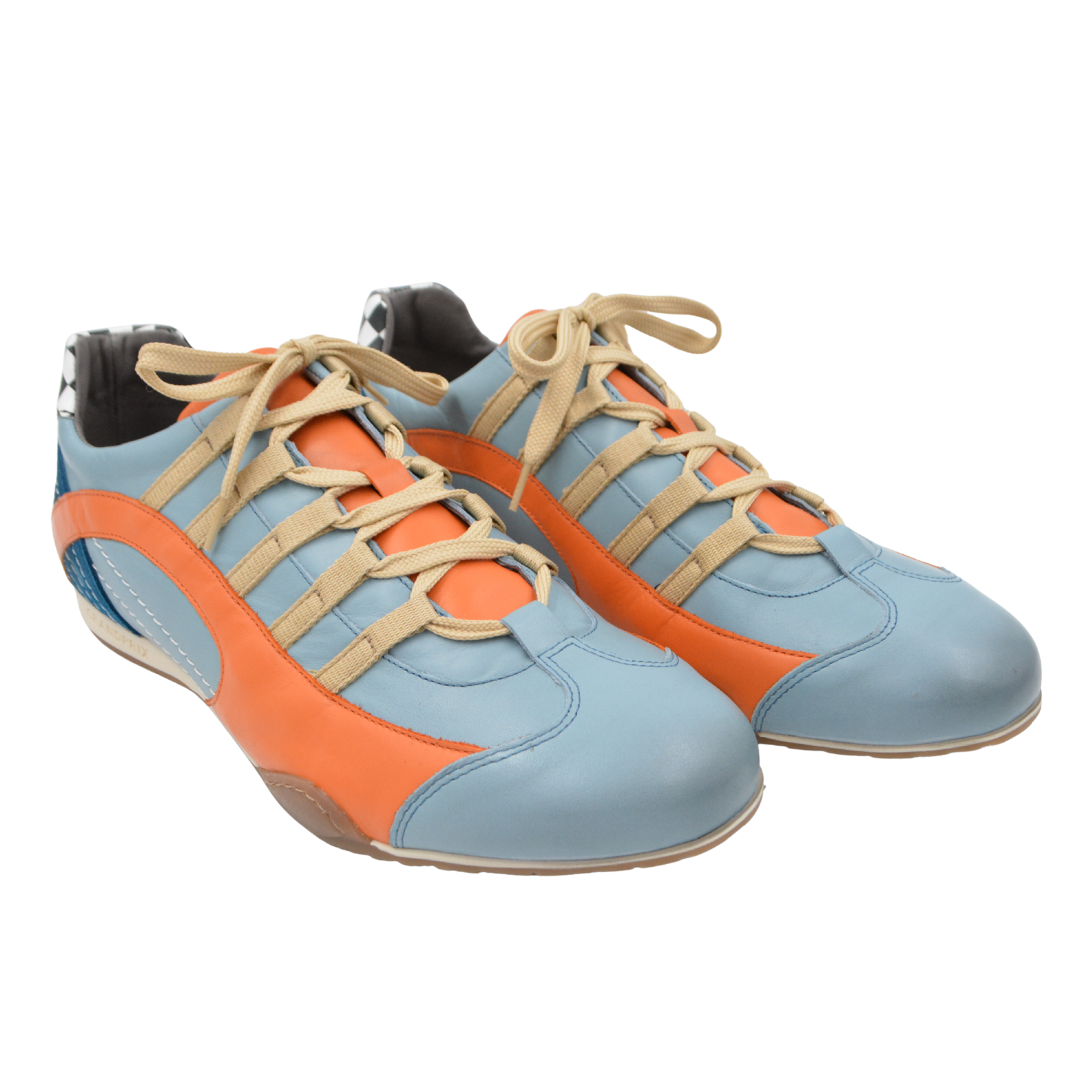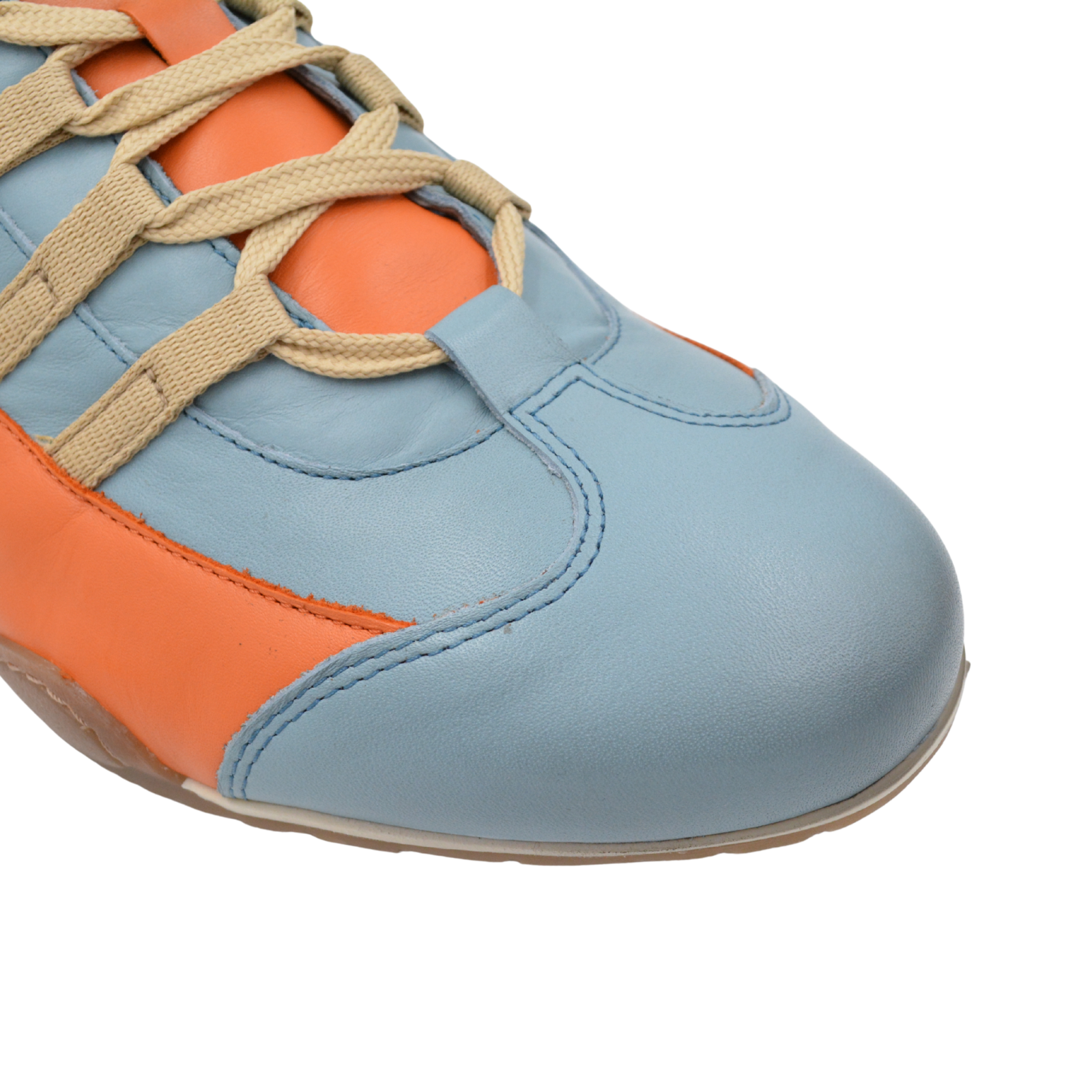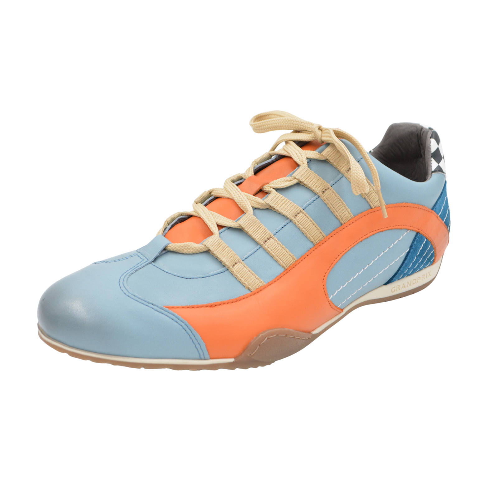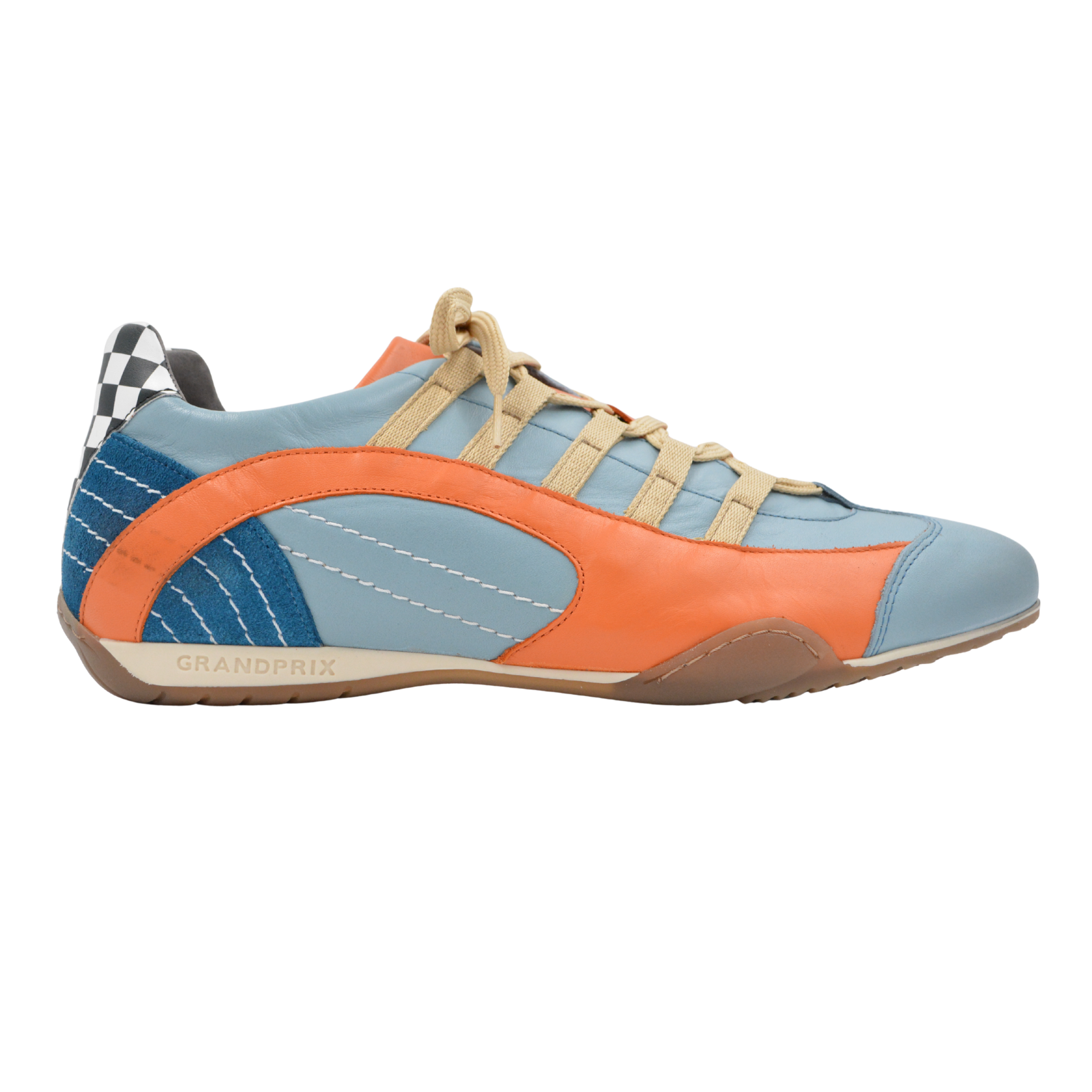 Der Racing Sneaker Ice Blue von Grandprix Originals vereint authentischen Motorsport-Look mit modernem Komfort. Inspiriert von den ikonischen Gulf-Farben, setzt der Sneaker mit seinem markanten Blau-Orange-Design ein sportliches Statement – dynamisch, stilvoll und unverwechselbar. Gefertigt aus 100 % hochwertigem Rindsleder und in Europa produziert, überzeugt dieser Sneaker durch seine erstklassige Verarbeitung, Langlebigkeit und eine perfekte Passform.