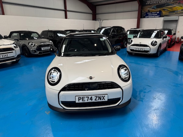 2024 74 MINI COOPER 1.5 AUTO, 4980 MILES SERVICE HISTORY. FINISHED IN STUNNING NANUQ WHITE PEARL WITH BLACK HEXAGON LEATHER HEATED SEATS, HEAD UP DISPLAY, KEYLESS ENTRY, NAV PACK MEDIA, SATIN BLACK INTERIOR TRIM, LEATHER MULTI FUNCTION STEERING WHEEL, MULTI SCREEN DIGITAL DASHBOARD, APPLE CAR PLAY, BLUETOOTH AUDIO, DAB RADIO, DAUL CLIMATE CONTROL, CRUISE CONTROL, SPEED LIMITER, SPORTS MODES, REAR PARKING SENSORS WITH REVERSING CAMERA, PRIVACY GLASS, DIAMOND CUT ALLOYS, BLACK MIRRORS, BLACK ROOF, AUTO LED HEADLIGHTS, UNION JACK REAR LIGHTS, AUTO WIPERS AND MUCH MORE. EXCEPTIONAL THROUGHOUT, 6 MONTHS ROAD TAX, REMAINDER OF MANUFACTURES WARRANTY, FULLY VALETED AND SERVICED ON COLLECTION OR DELIVERY, CAT N RECORDED, CHOICE OF 25 MINI ONE, CLASSIC, COOPERS, CLUBMAN, COUNTRYMAN, CONVERTIBLES, JCW IN STOCK NOW. IF YOUR LOOKING FOR A MINI CALL RICHARD CHECK OUT OUR GOOGLE REVIEWS @28STATECARS