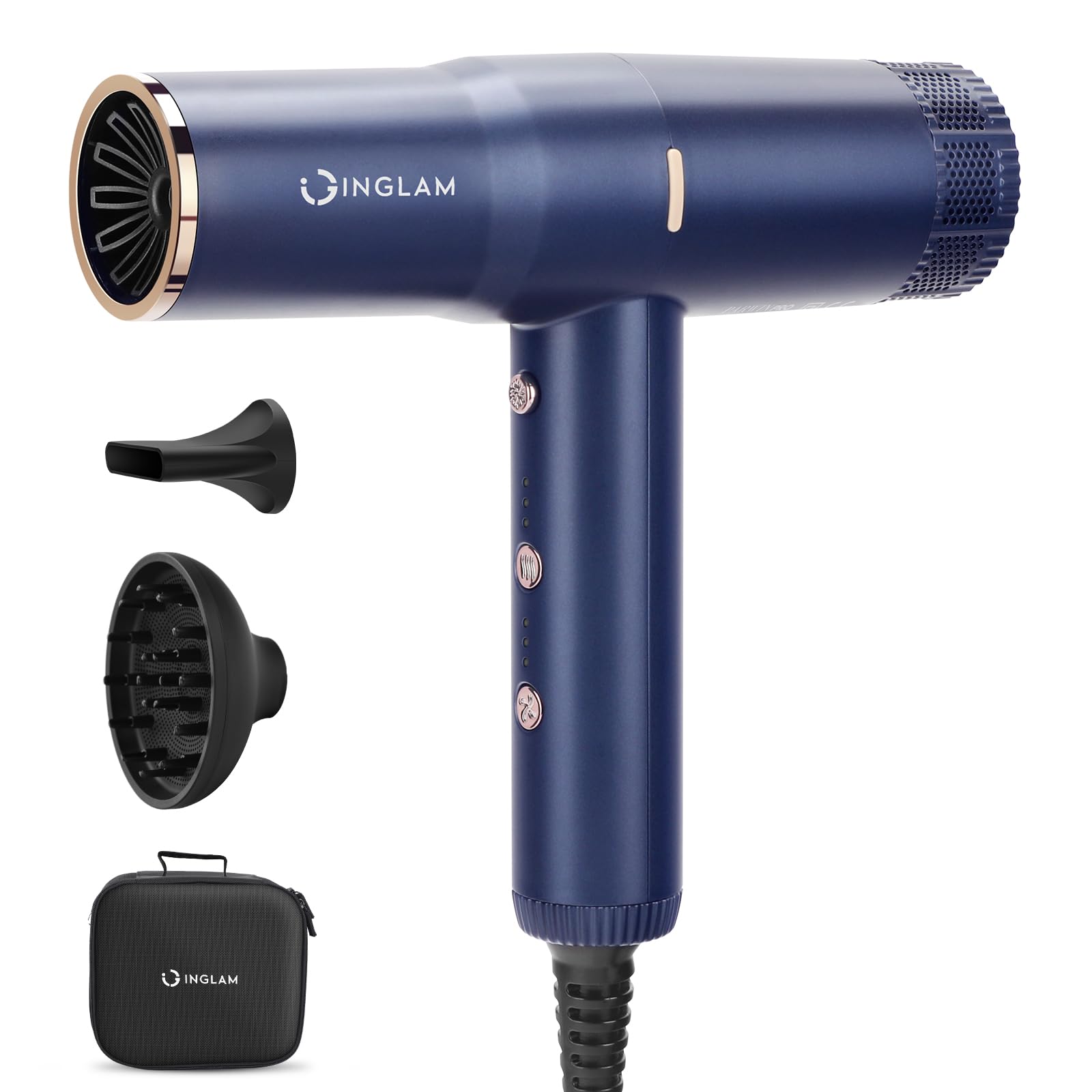 【Memory Function & Low Noise<79db 】IG INGLAM fast dry hair dryer automatically restores the gear that was adjusted the last time it was turned off. 〖Built-in high sound insulation intake device and sound-absorbing material layer, through a variety of noise reduction design can well reduce the sound generated, help us not to disturb your family's sleep even when using the hair dryer.〗