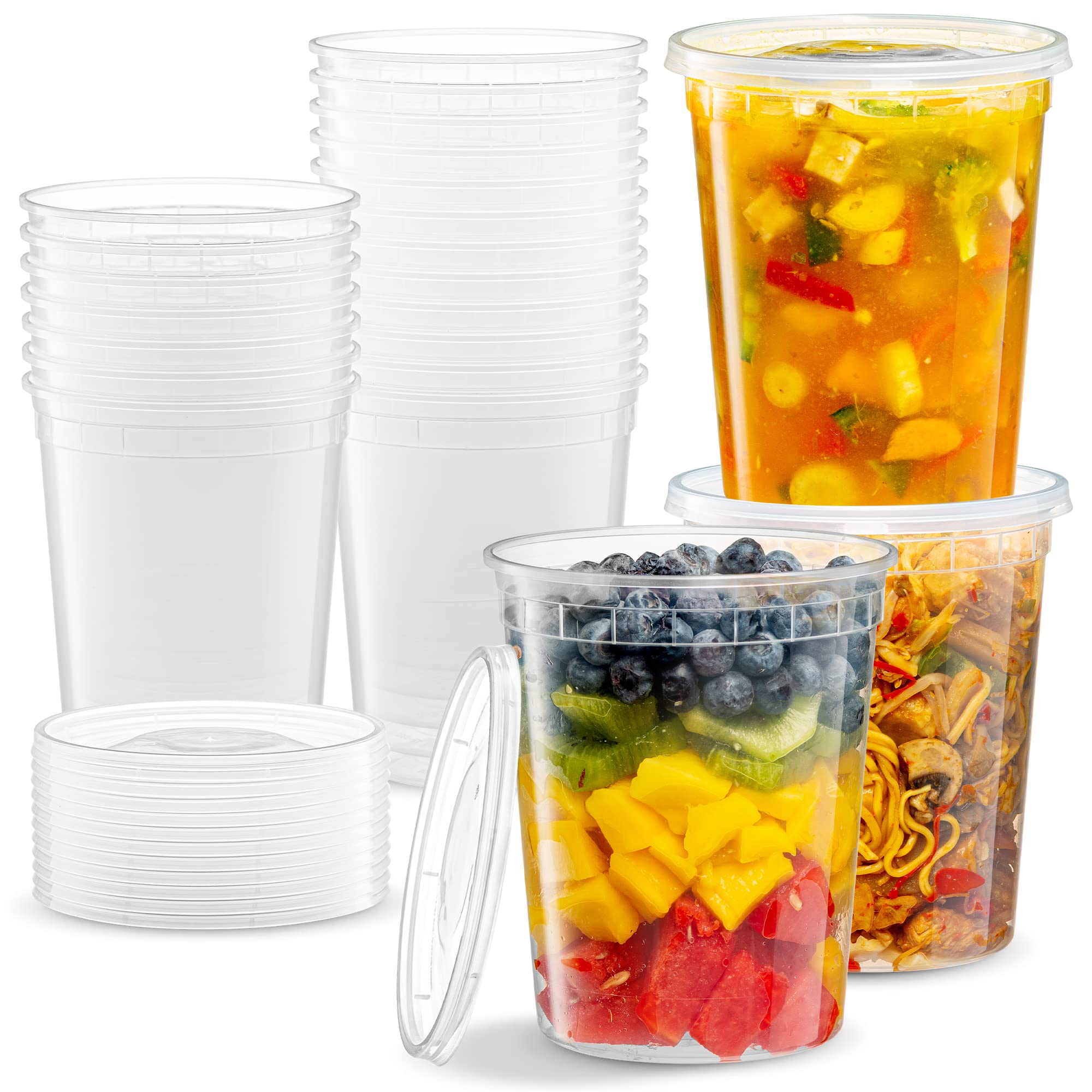 - 32 OZ - 24 Sets Plastic Deli Food Storage Containers with Airtight Flexible Lids Microwavable, Leak Free, Washable, Freezer Safe.