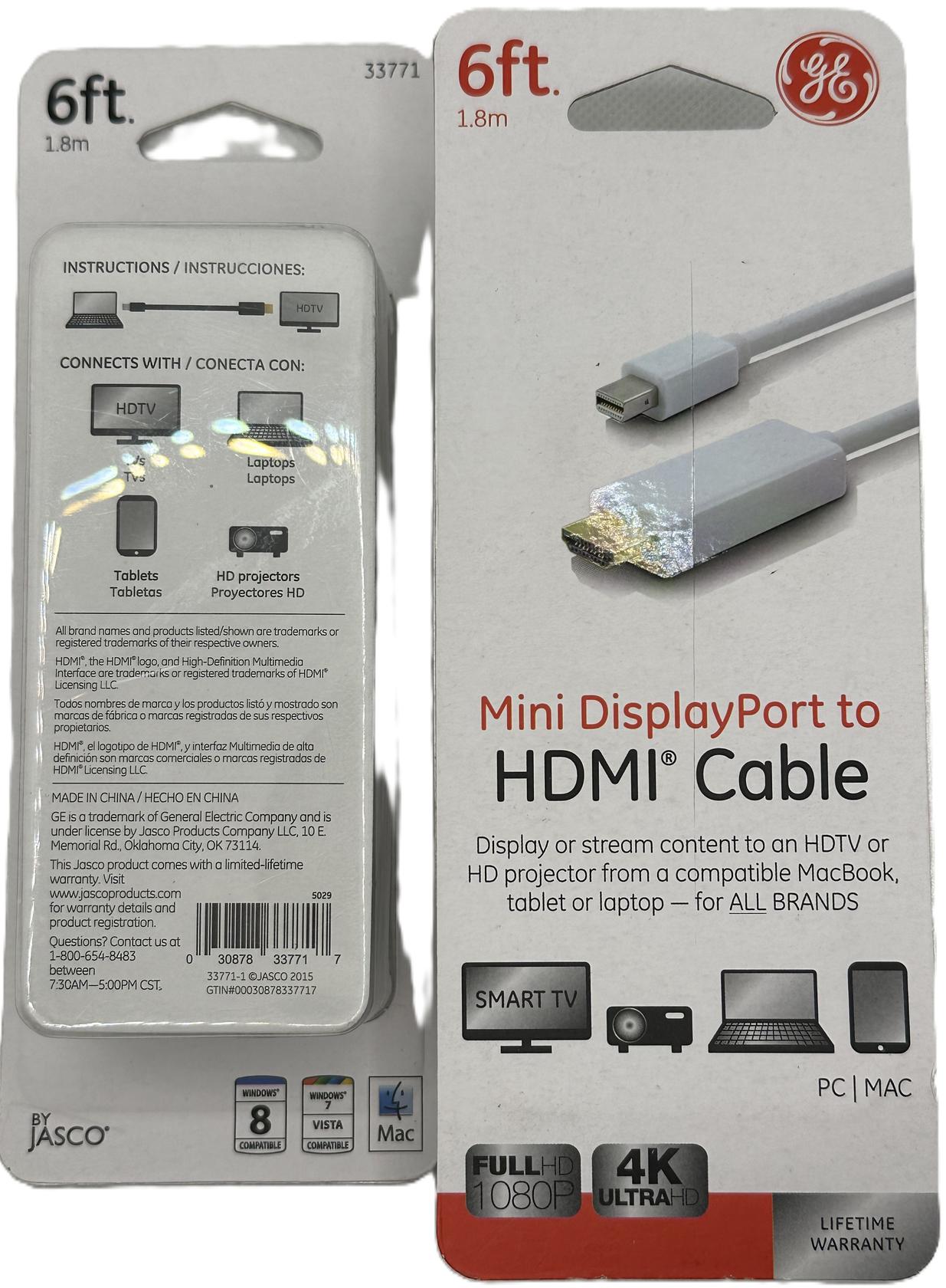 Create the ultimate media experience at home with a GE Mini DisplayPort to HDMI Adapter. The adapter allows you to mirror or stream high-definition video content straight from your laptop or tablet to HDMI-enabled devices. To use, simply connect the adapter from your laptop to an HDMI cable. In no time at all, youll enjoy screening your favorite movies and TV shows in a bigger, better way. The pocket-sized adapter comes in handy for a number of occasions and travels easily bring it to display your digital presentation at a business meeting or take it along for movie night at a friends house. Give your home entertainment system a boost with a GE Mini DisplayPort to HDMI Adapter.