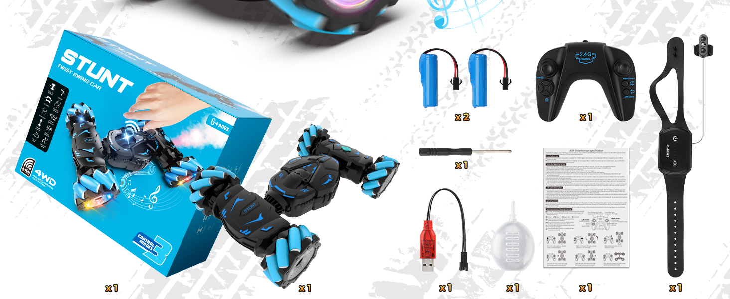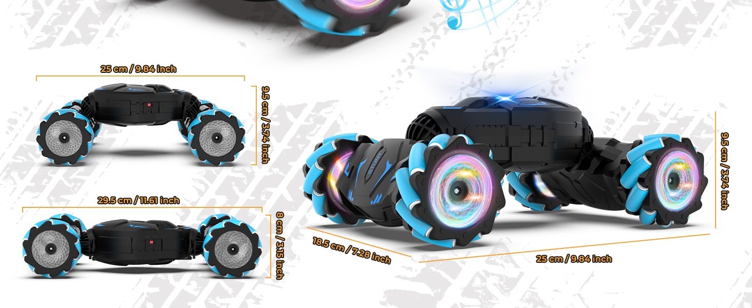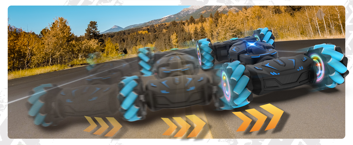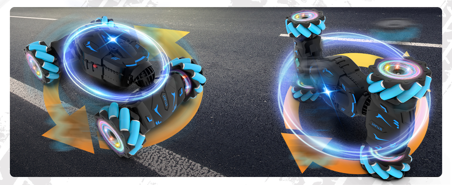 - Full-Featured RC Stunt Car: Gesture sensing rc stunt car can drive and drift in all directions, 360° rotation, 45° climbing, snaking, double-sided flip, twist into off-road and on-road modes. With powerful 4WD and flexible bionic joint design enables the gesture RC car to conquer various terrains such as grass, desert, rocks, stairs, carpet, rough roads, etc.