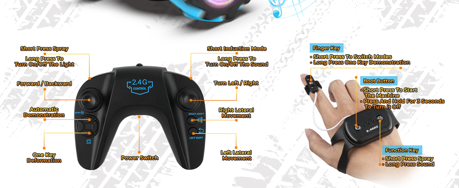 - Just change the gesture and the RC Car will change direction and transform accordingly. Very novel and simple operation, both Kids aged 6-12 and adults can quickly master the skills of hand controlled car.