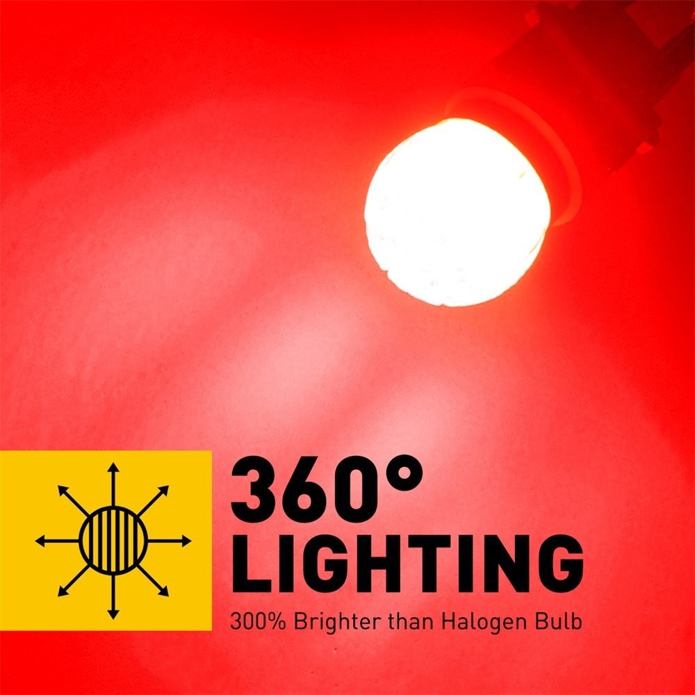 Specification: - Bulb Size: 3156, 3157, 3056, 3356, 3456, 4156, 3047, 3157A, 3057, 3155, 3157NA, 3357, 3457, 3457A, 4057, 4114, 4157 etc- Lumen: 2800LM - LED Chips:6- LED Chips/Per Bulbs - Color Temperature: Red - Voltage: DC 9-16V - Power: 40W - Lamp bead: LED - Beam Angle: 360° - Lifespan: >50000 hrs - Brightness: 300% brighter than halogen headlight - Application: Tail Light, Brake Light Features: *Small size mini size as original halogen bulbs for higher compatibility and simple installation. *High brightness AUXITO LED light features a better performance on brightness, ensure driving safety. *Better cooling effect and faster cooling speed. Ensures maximum performance and appropriate working temperature. *Waterproof, do not have to worry about losing effectiveness in aquatic products. *Anti-electromagnetic interference *Long service life LED light bulb efficiently speeds up heat dissipation to prevent bulbs from overheating to ensure superior performance, prolonging their lifespan up to 50,000 hours,freeing you from the trouble of frequent replacements. *Energy-saving Brighter light output with much less power consumption. *Simple installation Our LED light bulbs with compact size can make you install them in minutes.Other modifications are not required.