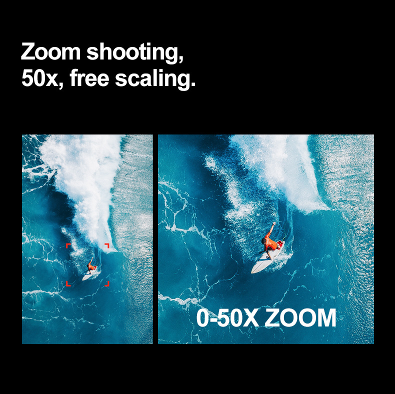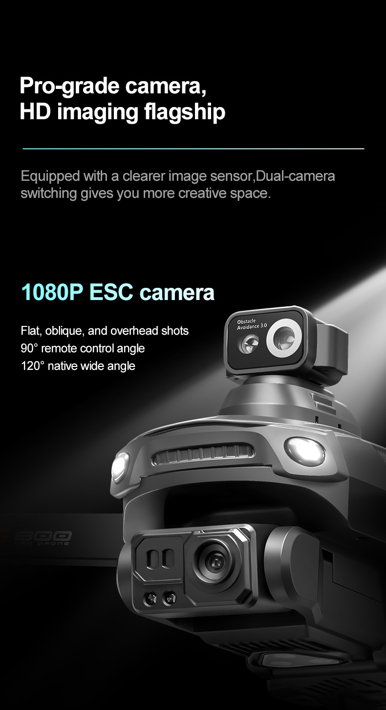 1, the front lens is placed 1080P HD WIFI, the bottom HD lens with optical flow can change the camera Angle, the steering gear head increase stability design, so that the photos are clearer