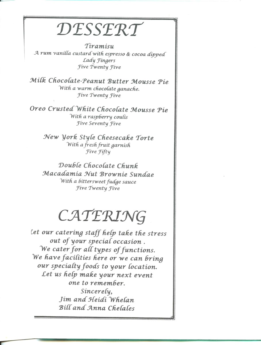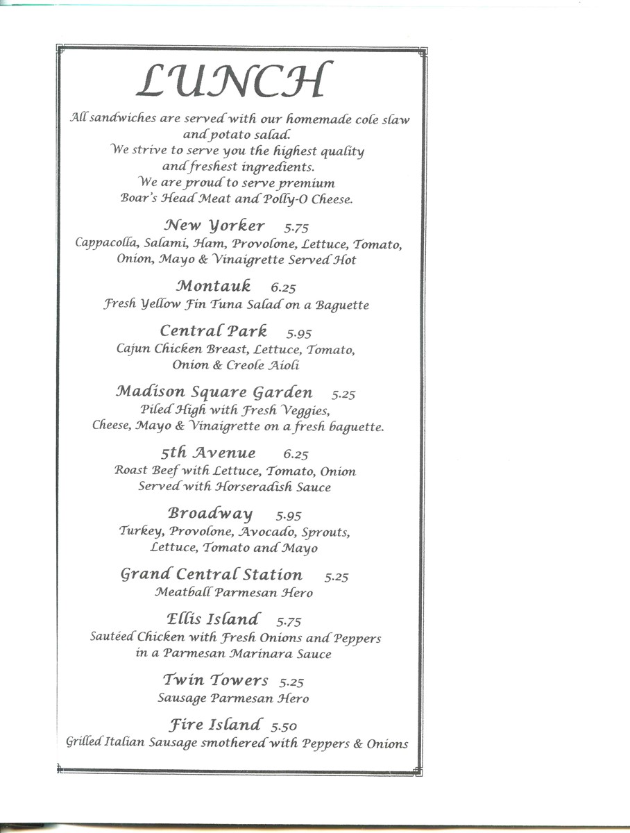 New York Cafe Lunch & Dinner Menus Whelan Chelales