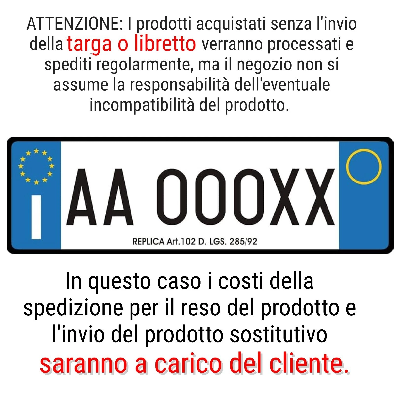INVIARE OBBLIGATORIAMENTE TARGA O TELAIO O FOTO LIBRETTO DOPO L'ACQUISTO.