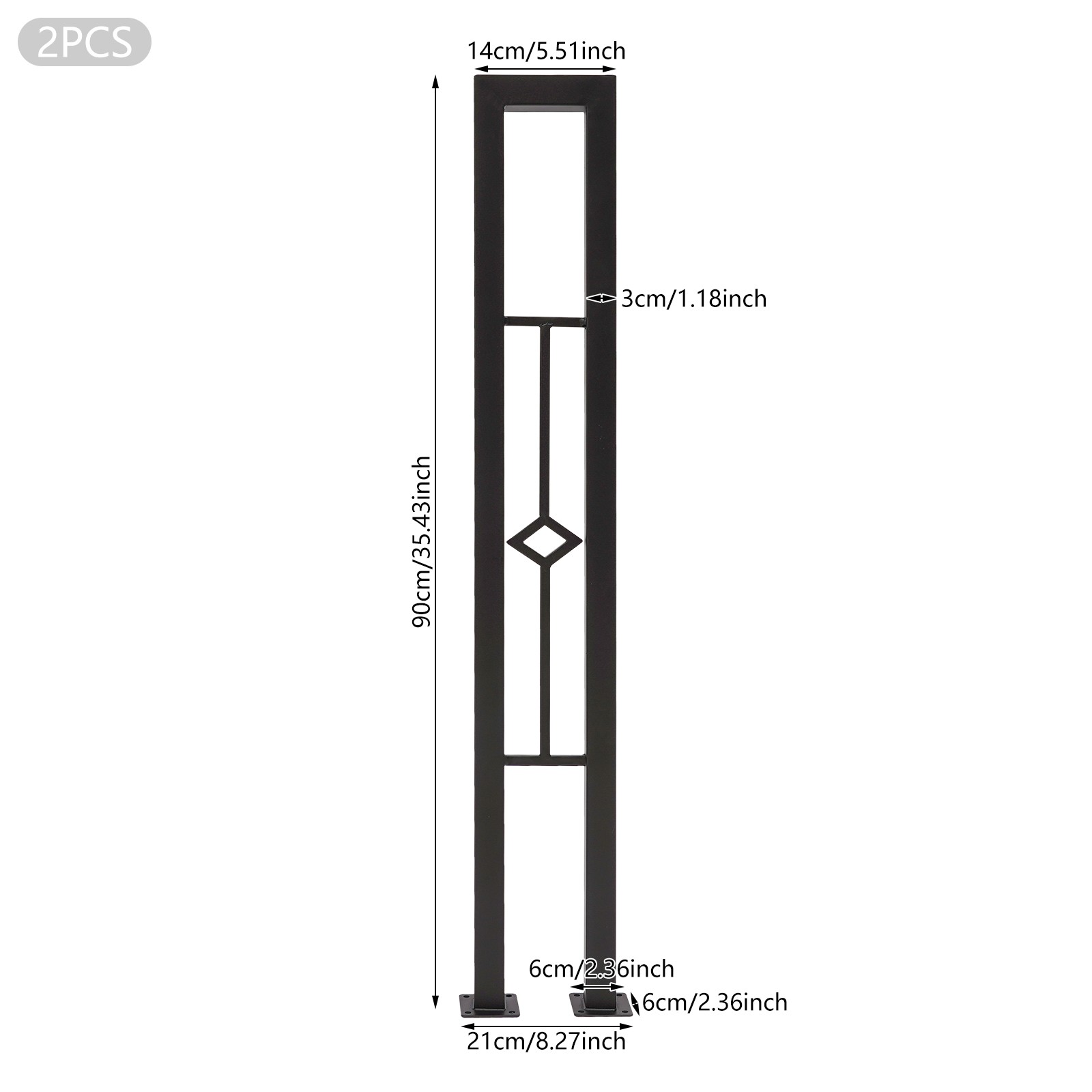 Reliable Base: The square base (2.36 x 2.36 inches) significantly increases the contact area between the post and the installation surface, effectively distributing pressure applied to the base, improving the service life and reliability of stair railing columns.