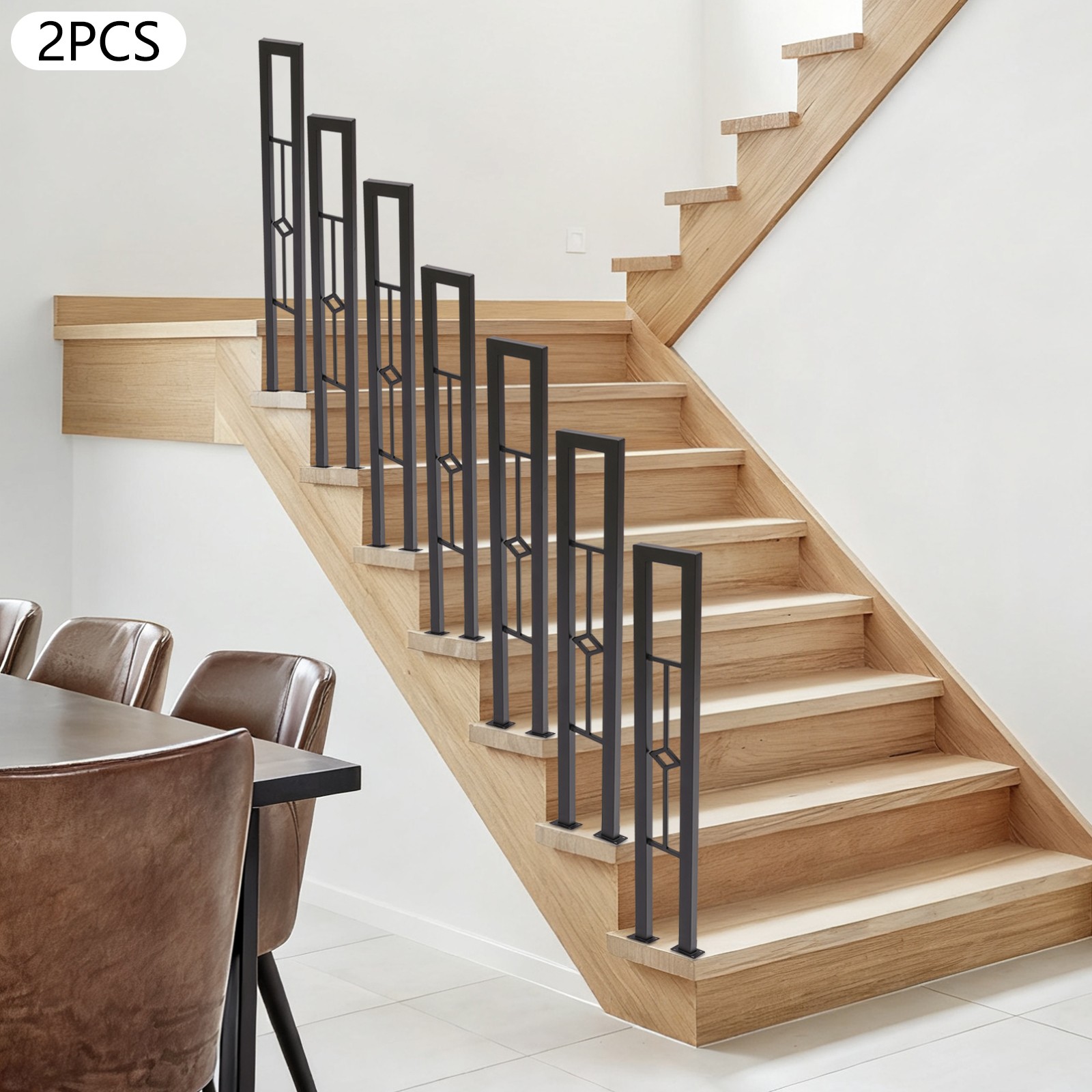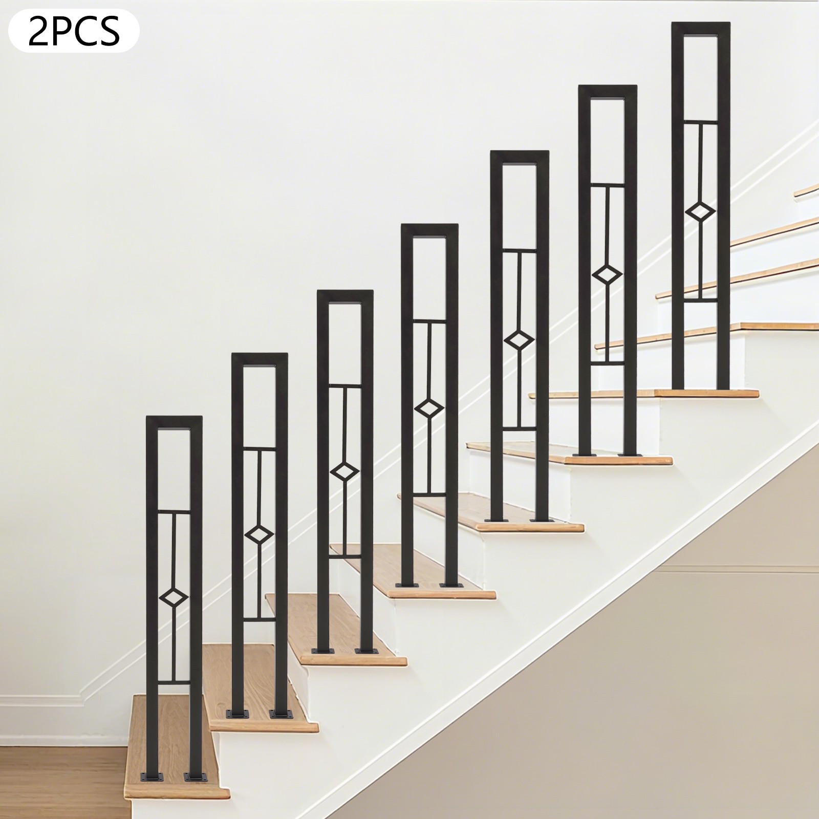 Fashionable & Simple: The stair railing combines a U-shaped structure with a diamond-shaped hollow design, presenting a modern and graceful look. It functions as a decorative piece for your home, bringing artistic beauty to the surrounding space.