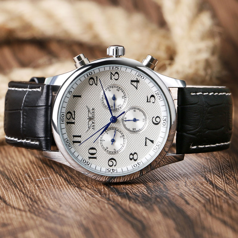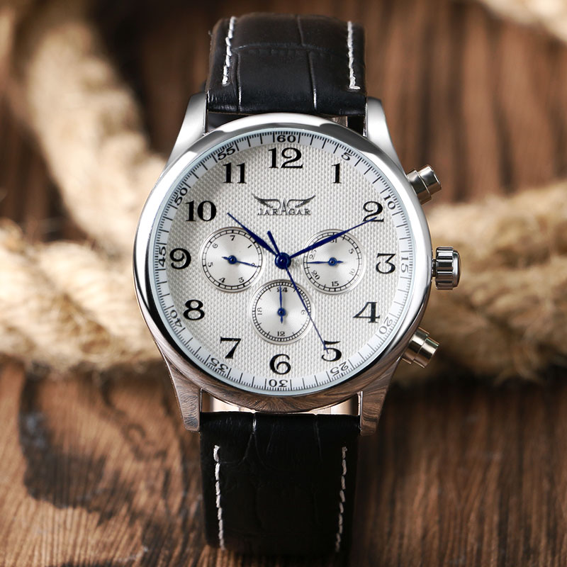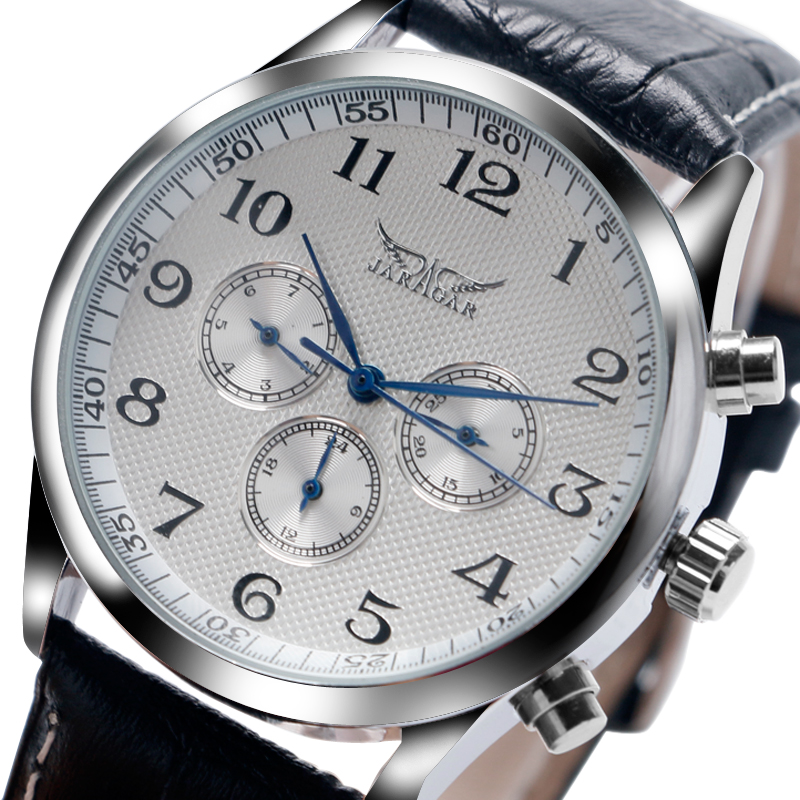 JARAGAR Men's Business Automatic Mechanical Watch Leather Strap Date Wristwatch