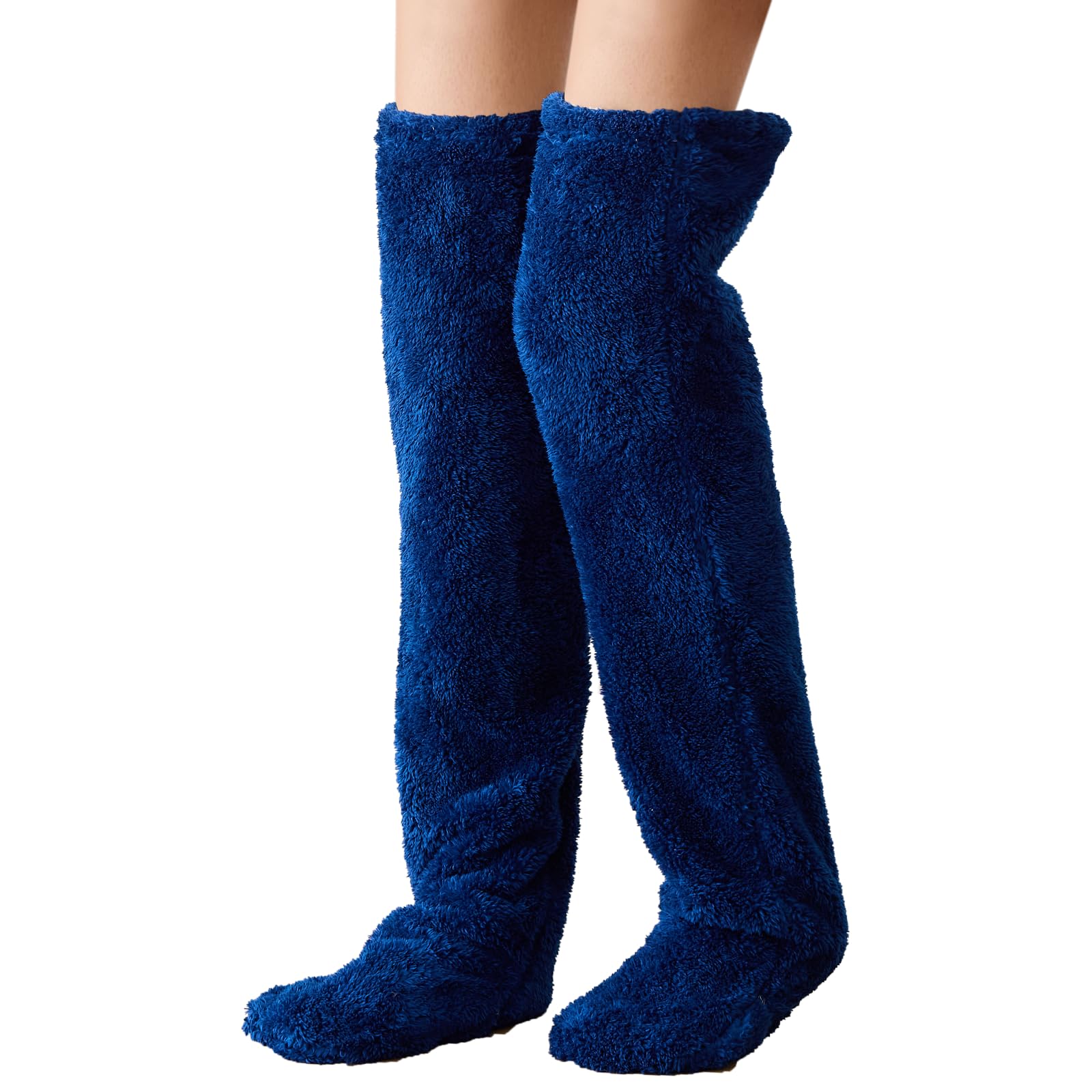 NAITEWELSE Fuzzy Thigh High Socks Over Knee Plush Elastic Fashion, Dark Blue