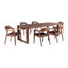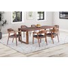 It will be a pleasurable experience to see all your family and friends together around the Boraam 7-piece Rasmus Dining Set. The drop leaf extension dining table is designed to seat up to 8 people in its extended version. Its solid rubber wood structure, and the chestnut wire-brush finish will bring a warm rustic style to your dining decor. The dining chairs are also upholstered with soft brown faux leather upholstery. This 7-piece set is available in our new chestnut wire-brush finish. The dining table has a drop leaf extension that is included. This set is ready for assembly upon delivery with all tools and hardware included.