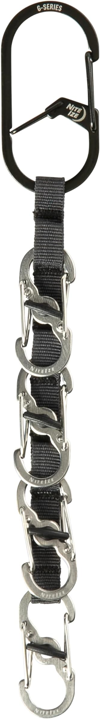 The Nite Ize GearLine Mini Key Organizer keeps your keys and accessories in line. This flexible, all-purpose key carrier features a rugged polyester webbing with multiple bar-tacked loops, connecting 4 S-Biner MicroLocks to the webbing. From each MicroLock, you can clip keys, fobs, and accessories and lock them down with a twist, keeping them vertically aligned for easy grabbing. The MicroLocks unlock and detach from the daisy chain in a snap, allowing you to grab individual keys when running errands, walking the dog, or going for a jog. Attached to the top of the webbing is a G-Series Dual Chamber Carabiner size 2, which allows for easy clipping to a belt loop, backpack, or bag. The distinct dual chambers of the G-Series ensure that attaching and detaching from belts and bags is a breeze, with the line staying separately secured in its bottom chamber. With its durable design and thoughtful touches, GearLine Mini is the ultimate key organizing, attaching, securing, and swapping solution.