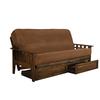 The futon is a classic hardwood frame with mission style arms. This unique and versatile full size futon sofa easily converts to a Bed. This multifunctional piece of furniture can find a home in just about any type of room.