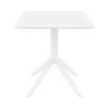 Lucy outdoor bistro set with two dining chairs and one square table. Contemporary design. Made from commercial grade resin with gas injection molded legs. Extremely durable for outdoor temperatures. Easy cleaning. Perfect for heavy use indoor outdoor areas.