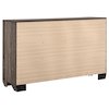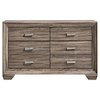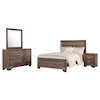 Crafted for durability, this four-piece bedroom set is a practical choice. It features a lovely, transitional design that blends seamlessly with a variety of home decor styles. Bold, black recessed grooves stand out strikingly against its subtle, washed taupe finish. Natural oak wood grain raised on engineered wood adds an effortless touch of glamour. Rounded out with picture framed case fronts and ample drawer space, this set exudes quality, class, and convenience.