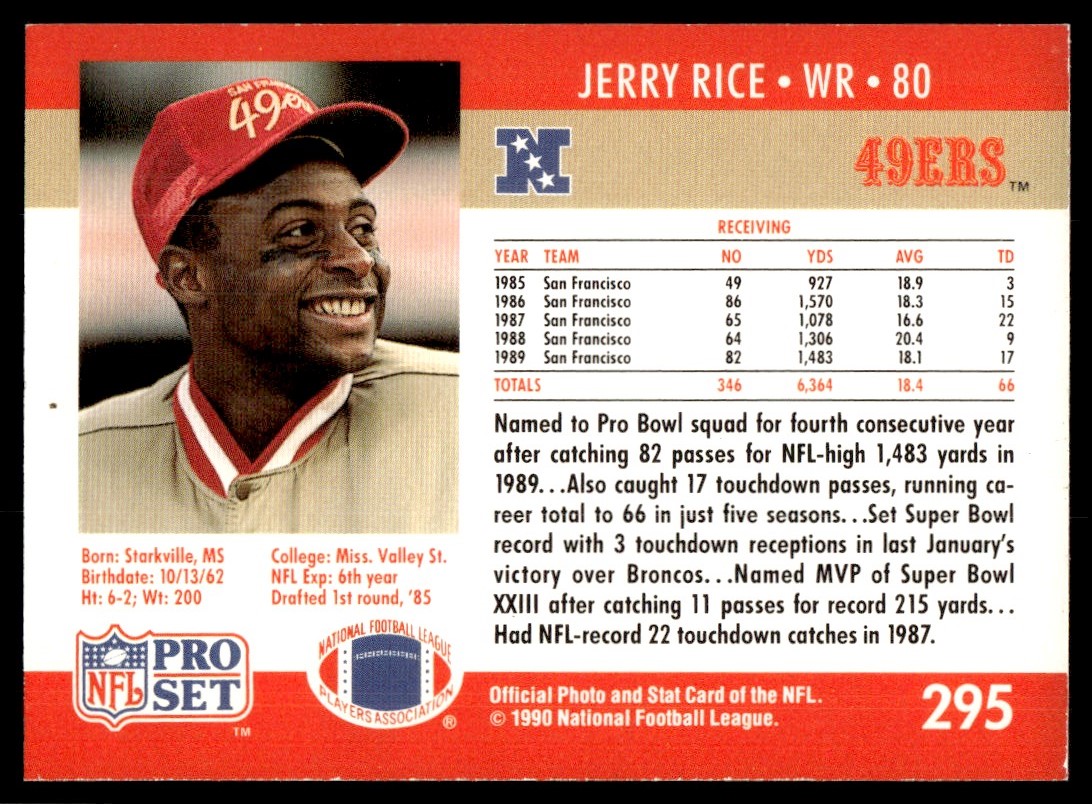 1990 Pro Set Jerry Rice San Francisco 49ers #295