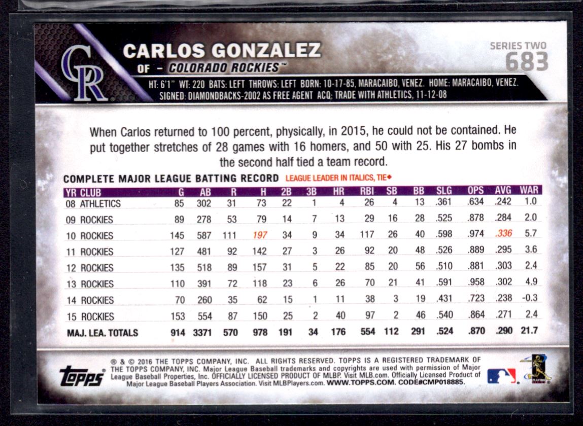 2016 Topps 683 Carlos Gonzalez