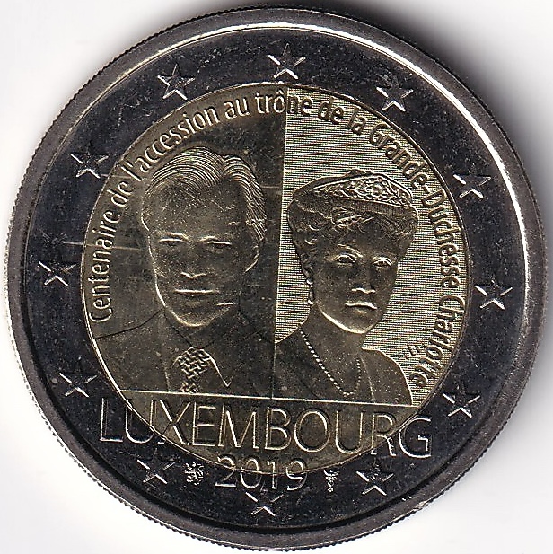 | Bezeichnung / Designation: | 2 Euro Gedenkmünze Luxemburg | | Titel / title: | "100. Jahrestag d. Thronbest. v. Großherzogin Chalotte" | | Ausgabjahr / Year of issue: | 2019 | | Legierung / alloy: | CuNi / CuZn | | Erhaltung, Größe: | ST, Ø 23,25 | | Auflage / Edition: | 300.000 Stück | | Zustand / Status: | unzirkuliert / Bankfrisch | | Verpackung / Packaging: | verschlossener Beutel | | Sonstiges / Other: | Event. im Bild eventuell andere Prägeanstalt angegeben |
