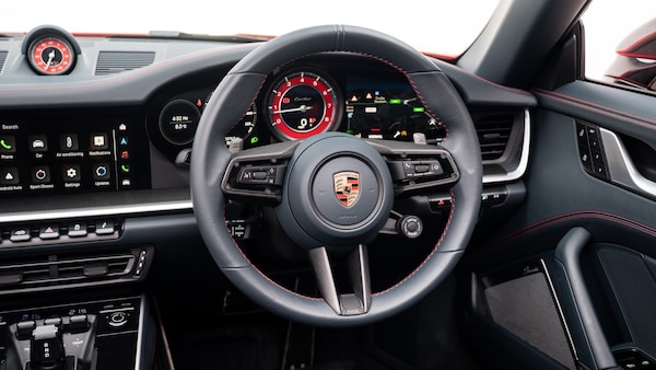 ..[Optional Extra] Guards Red Exterior, [Optional Extra] 20/21 911 Turbo S Wheels, [Optional Extra] Exterior Mirror Upper Trims In Carbon, [Optional Extra] Interior Trim Package With Decorative Stitching In Contrasting Colour, [Optional Extra] Carbon Matt Interior Package, [Optional Extra] Sports Exhaust System (Tailpipes In Black) PASM Sport Suspension (-10 Mm), [Optional Extra] Adaptive Sports Seats Plus, Electrical 18-Way With Memory, [Optional Extra] Burmester High-End Surround Sound System, [Optional Extra] ParkAssist Including Surround View, [Optional Extra] Power Steering Plus, [Optional Extra] Tinted LED Main Headlights With Matrix Beam Including Porsche Dynamic Lighting System Plus (PDLS+), [Optional Extra] Heated GT Sports Steering Wheel In Leather With Matt Carbon, [Optional Extra] Adaptive Cruise Control, [Optional Extra] Exclusive Design Taillights, [Optional Extra] Model Designation Painted In Black (High-Gloss), [Optional Extra] Brake Calipers Painted In Black (High-Gloss), [Optional Extra] Slat Inlays Rear Lid Painted In Black (High-Gloss), [Optional Extra] Model Logo On Storage Compartment Lid, [Optional Extra] Electric Folding Exterior Mirrors, [Optional Extra] Rev Counter In Guards Red, [Optional Extra] Seat Belts In Guards Red, [Optional Extra] PORSCHE Logo Painted In Black (High-Gloss), [Optional Extra] Porsche Logo LED Door Courtesy Lights, [Optional Extra] Rear Side Air Intakes Painted In Black (High-Gloss), [Optional Extra] Sport Chrono Stopwatch Instrument Dial In Guards Red, [Optional Extra] Side Skirts Painted In Exterior Colour, 2 USB-C ports in center console main storage compartment lid, socket (12-volt) in passenger footwell,Automatic start/stop system,eCall emergency system,Gear indicator in rev counter,Instrument cluster with central analogue rev counter and two 7-inch TFT displays,Music streaming and online radio, remote services and a wide range of other Porsche connect services,Porsche Communication Management (PCM) including online navigation module, mobile phone preparation, audio interfaces and voice control system,Porsche Communication Management (PCM) with high resolution 10.9-inch touchscreen centre display,Porsche WET Mode,Rev counter with digital gear display and vehicle speed with illuminated ''turbo'' logo,Service indicator,Smartphone integration with Apple CarPlay and Android auto,Stationary management with HOLD function,Trip computer,Warn and brake assist including pedestrian protection,8 Speed Porsche