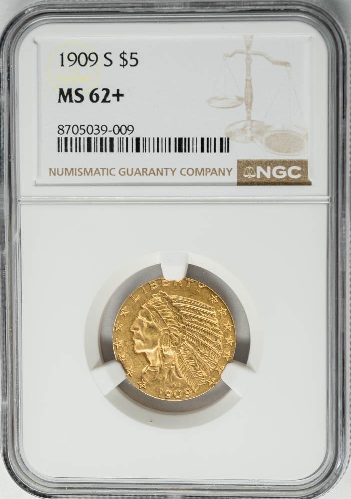 1909-S $5 Gold Indian MS62+ NGC 949112-2