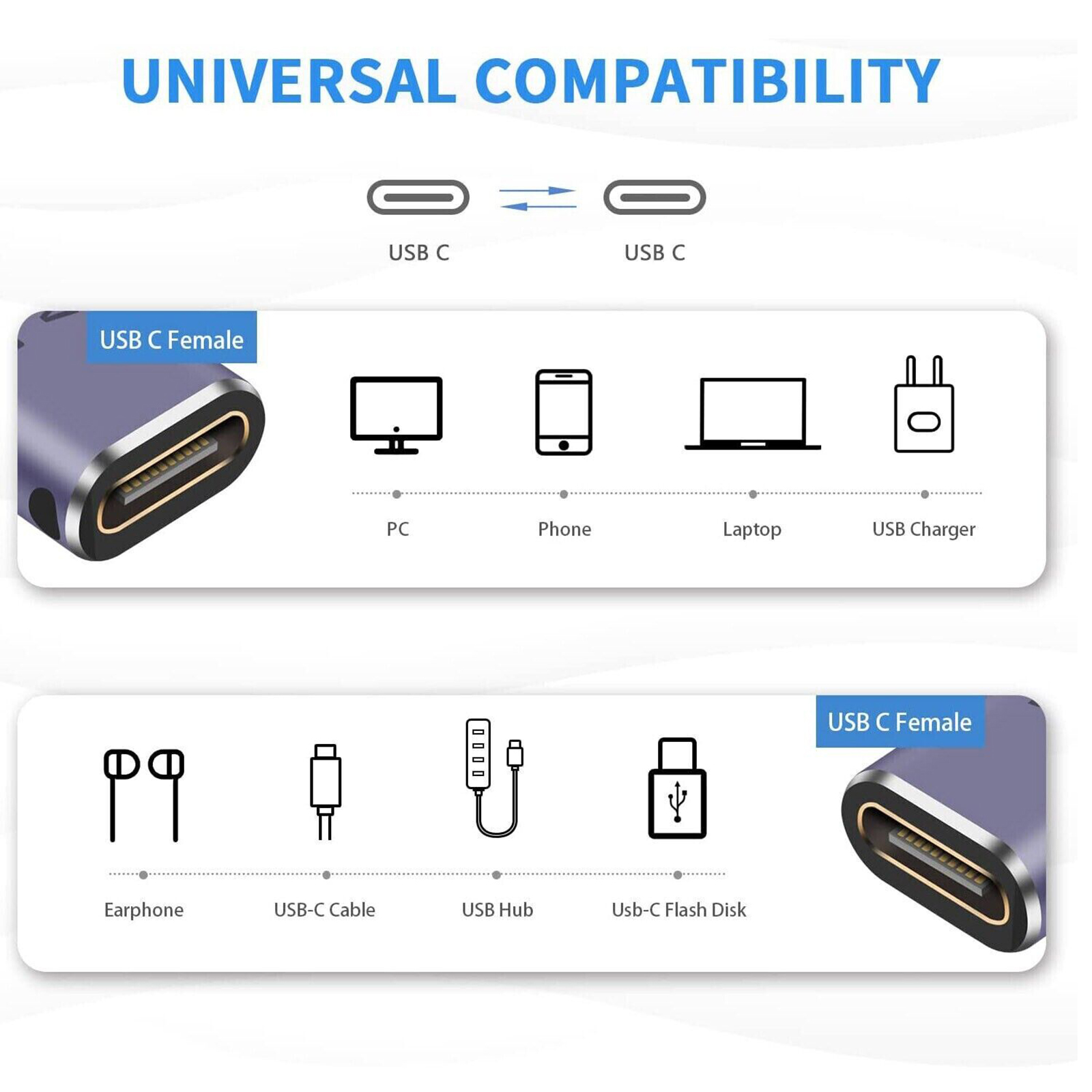 this usb c coupler is used to join two shorter usb c cables together when you need to extend the length of a usb-c cable for fast charge, data transfer or video pass through.