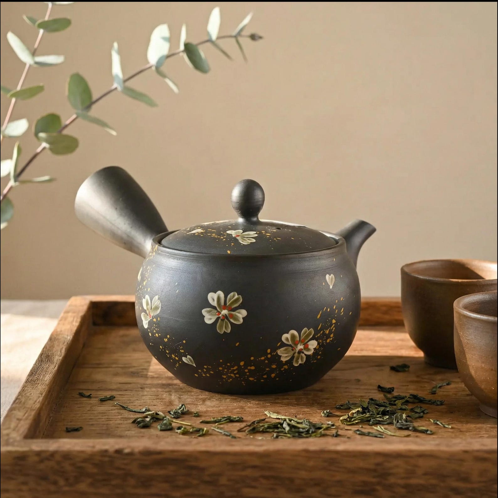 We also offer kyusu teapots in other colors such as dark brown, beige, and floral variations, allowing you to choose based on your style or tea setup.