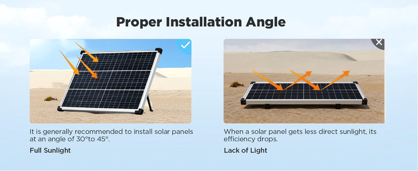 For optimal energy yield, install the panel facing true south (Northern Hemisphere) or true north (Southern Hemisphere) with a tilt angle close to the site latitude. Seasonal adjustment can further improve performance.