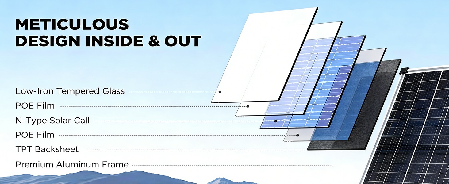 High Conversion Efficiency: With advanced N‑Type cells, this 100W solar panel achieves conversion efficiency of up to 25%, providing more power in a limited space.