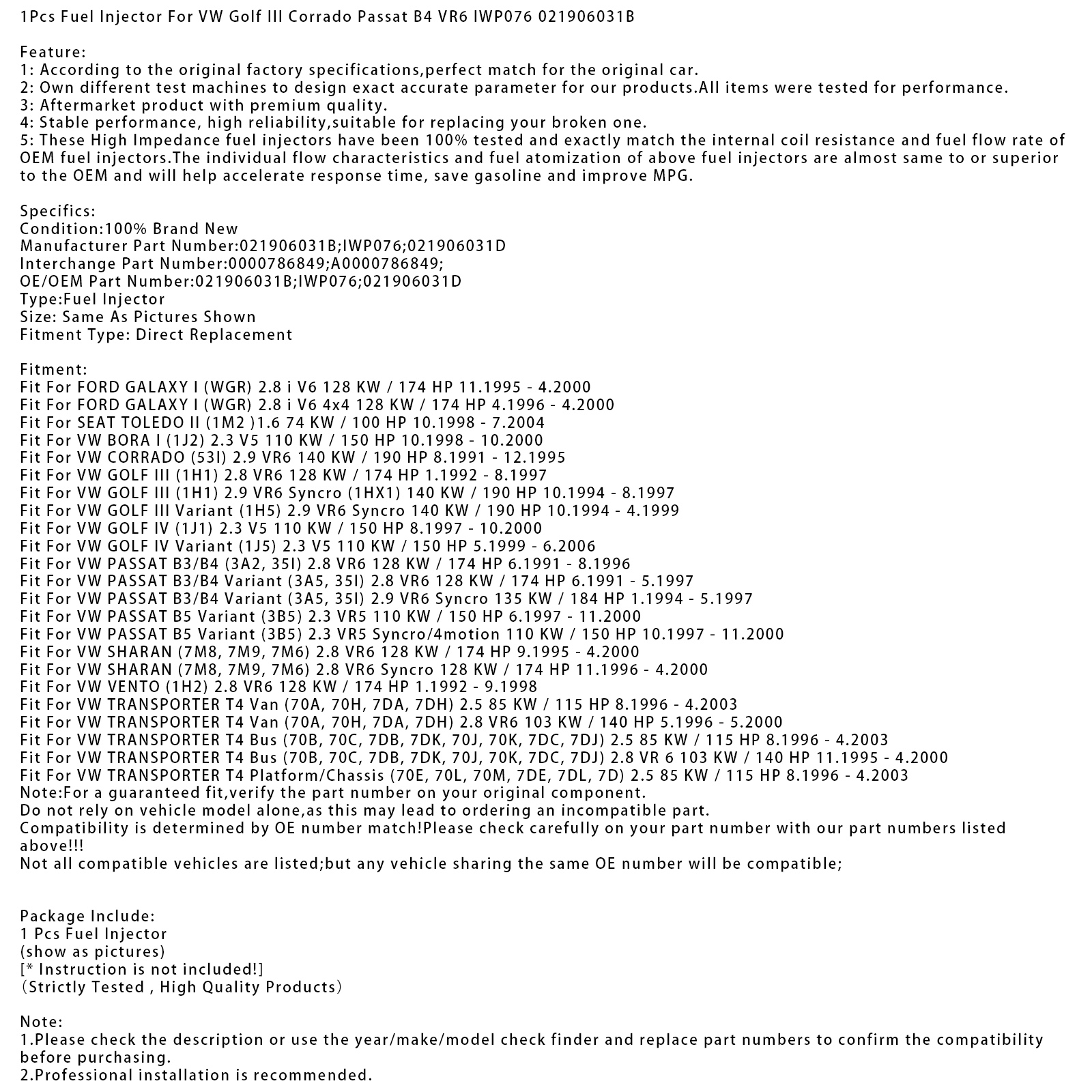 1Pcs Fuel Injector For VW Golf III Corrado Passat B4 VR6 IWP076 021906031B