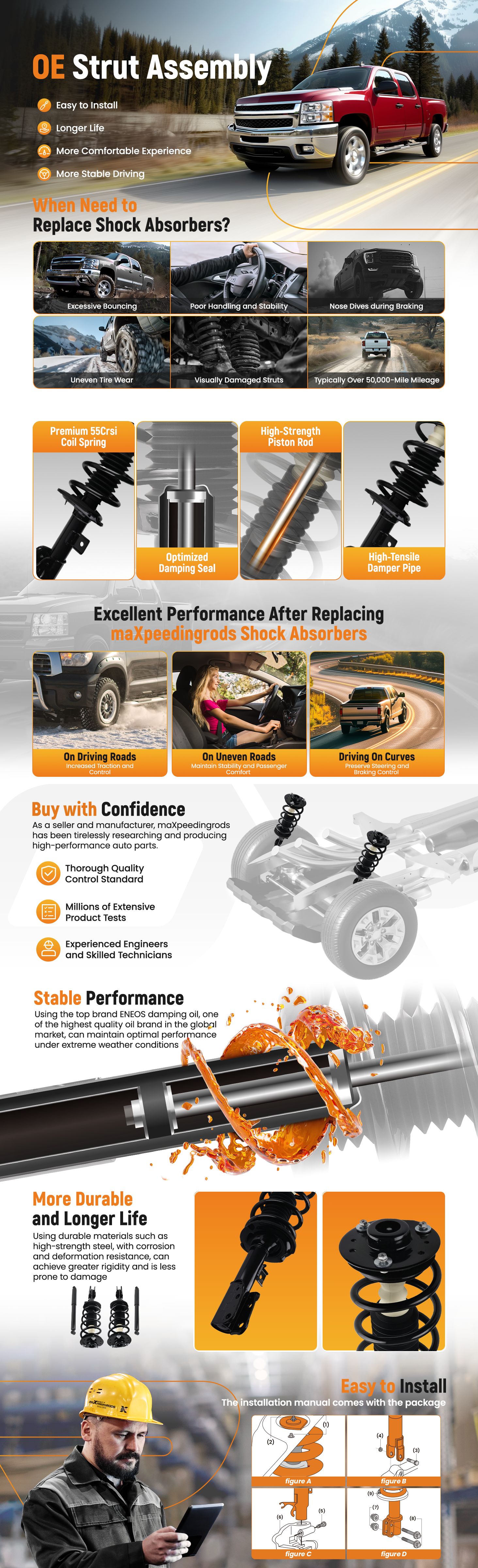 Using Japanese ENEOS brand damping oil to to ensure stable shock absorber operation from -40℃ to 80℃.