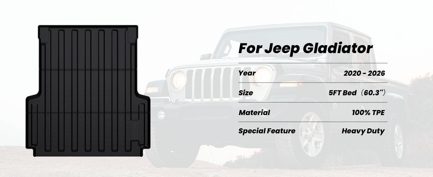 LASFIT 5FT (60.3inch) Bed Mat for Jeep Gladiator 2020-2026 TPE Cargo Liner (Don't Fit Drop-in Bed Liners)